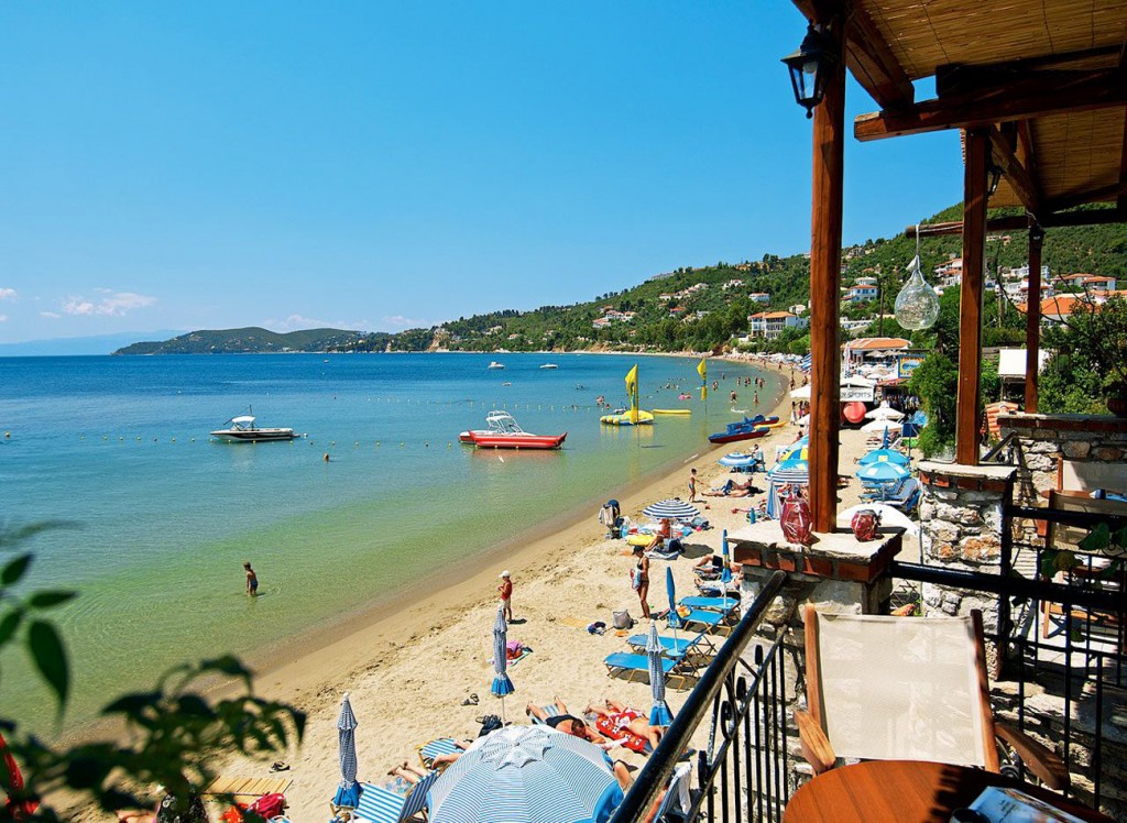 Megali Ammos Beach is located about 1 km from Skiathos Town. This beach is within walking distance of the town. You may get there with a taxi or take the bus from Skiathos Town Station, located across the port in the town's school parking area. The bus stop of Megali Ammos is 5. Check details & bus routes here.