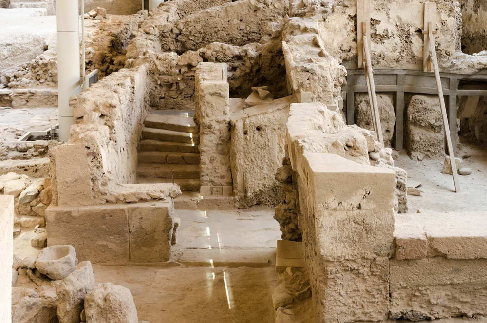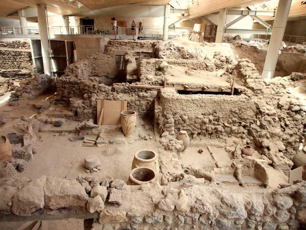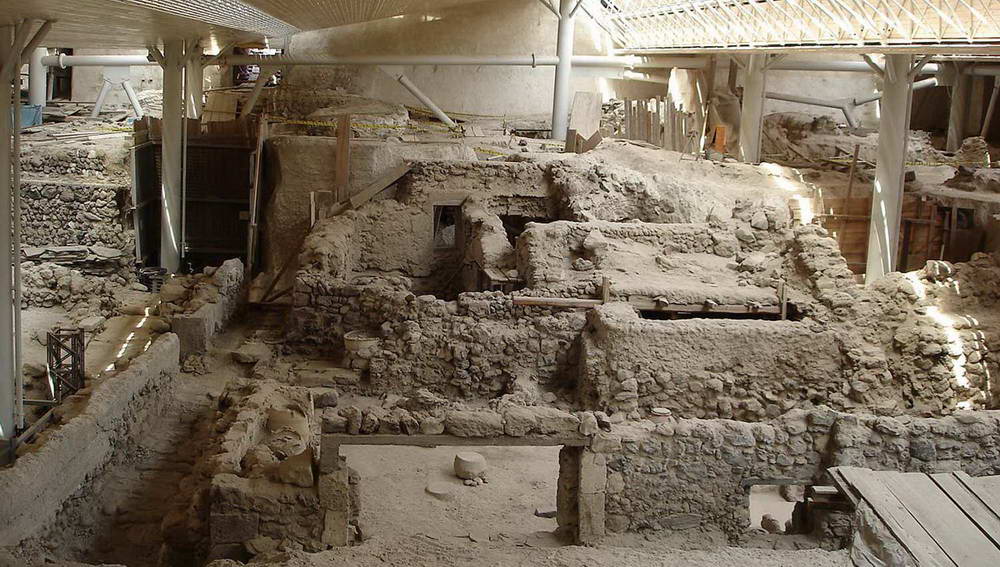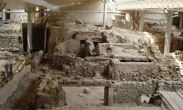 Santorini Sights & Monuments - Ancient Sight Akrotiri in Santorini, Greece, is located in the southern part of Fira and is one of the most renowned ancient sites on the island. The ancient city of Akrotiri was destroyed by a volcanic eruption nearly 35 centuries ago. Recent excavations uncovered traces of the Minoan civilization, revealing a two-story building with well-preserved frescoes, kitchenware, and household items beneath a layer of ash. Interestingly, human remains were never found, leading scientists to believe the city's inhabitants had evacuated before the disaster. The wall frescoes showcase colorful depictions from Greek mythology and the Olympian gods. The site also features the Temple of Apollo, the Roman Theatre, which was a meeting place for authorities, and Christian churches converted from pagan temples. The stunning mix of Byzantine, Roman, and Greek cultures is evident in the architecture and art of the time. Visit Ancient Sight Akrotiri in Santorini, Greece, to immerse yourself in the rich history of this incredible location.