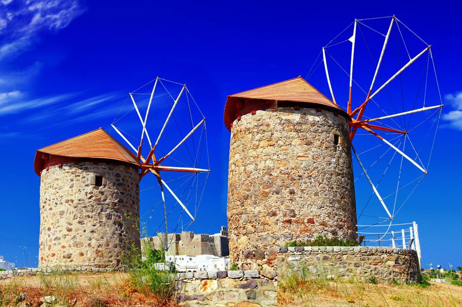 Windmills in Patmos, Greece