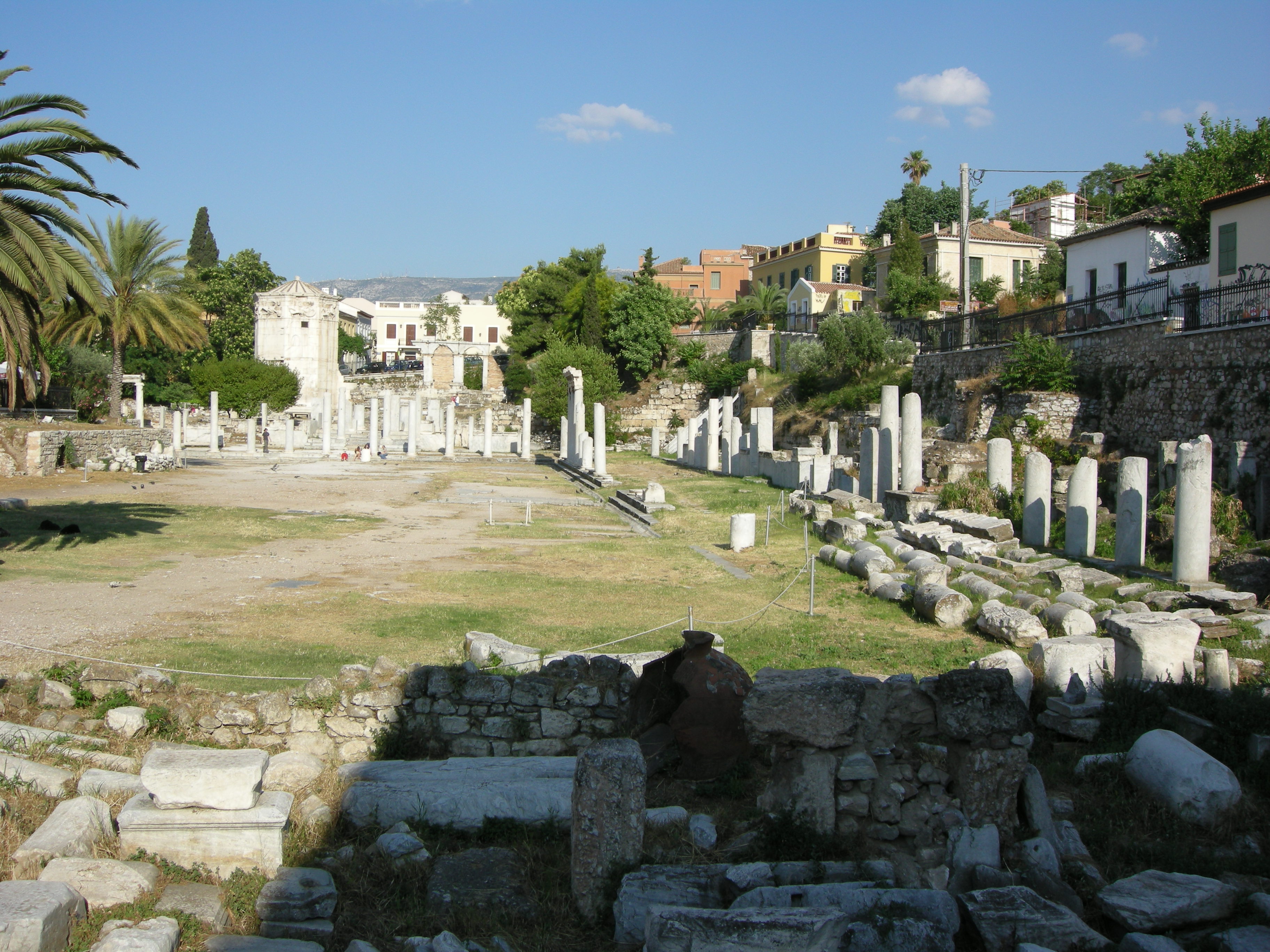 Athens Sights & Monuments - Located adjacent to the Acropolis in Athens, Greece, is the magnificent Roman Agora. This awe-inspiring structure was intentionally placed near the epicenter of pagan worship, similar to other Greek cities' capital markets. Dating back to the first century BC, the Roman Agora was generously funded by Julius Caesar Augustus and boasts a spacious rectangular courtyard encircled by an array of shops and warehouses. While tourists explore the inner courtyard adorned with Ionic columns, the complex's outer limits lead directly into Athens' bustling Monastiraki shopping district. Experience the history and grandeur of the Roman Agora in Athens, Greece.