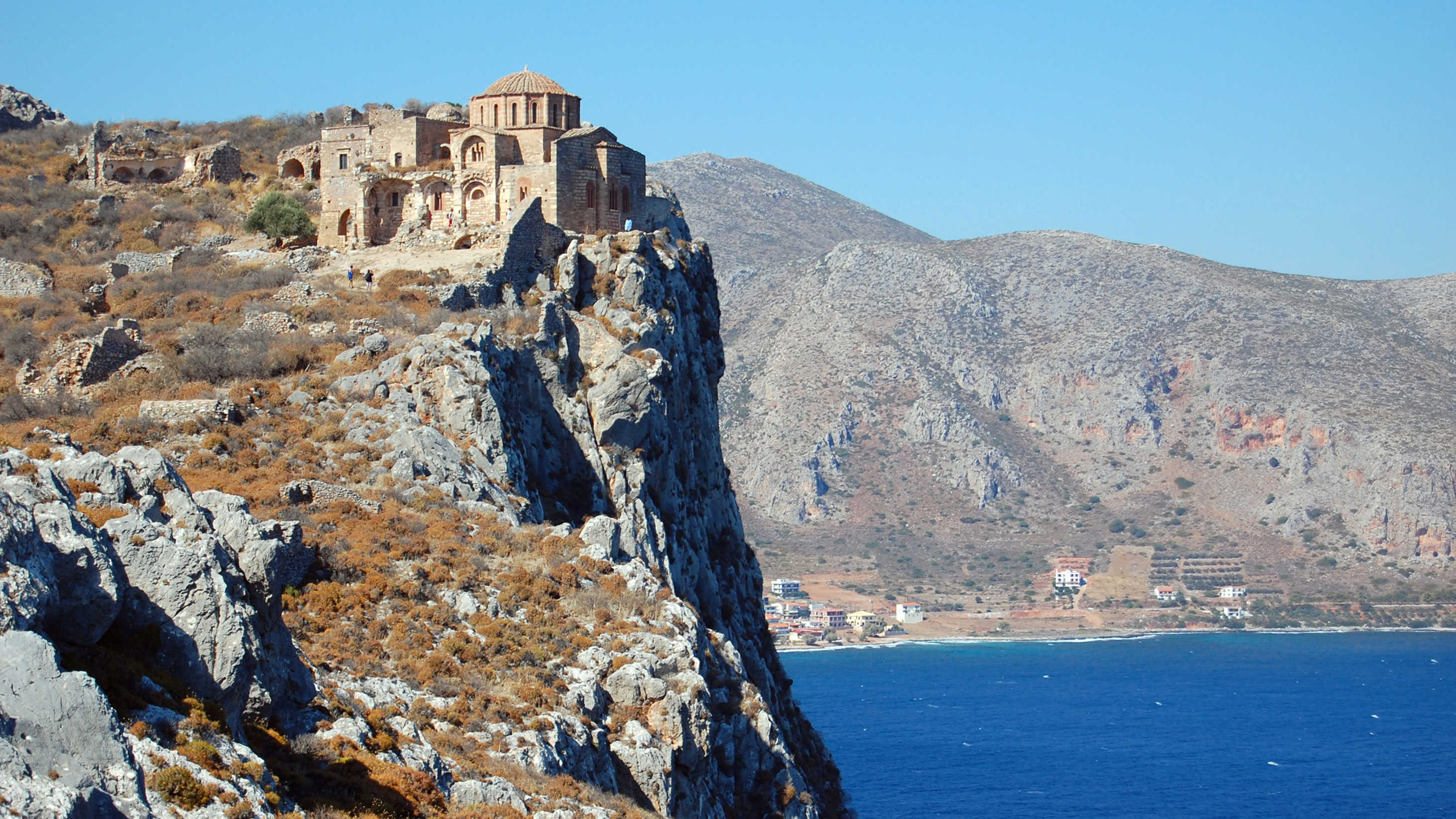 Monemvasia Sights & Monuments - Monemvasia Castle in Peloponnese is a stunning fortress that boasts an area of a large plateau, approximately 100 metres above sea level, 1 km long and up to 300 m wide. The town walls and numerous Byzantine churches still stand today, offering visitors a glimpse into its rich medieval history. This fortress was built into a rock and is only accessible by a narrow and unique road, making it almost impenetrable for barbarian raids. The name "Monemvasia," which means "one-way," adds to its charm and allure. Discover the captivating beauty of Monemvasia Castle in Peloponnese and immerse yourself in an unforgettable experience.