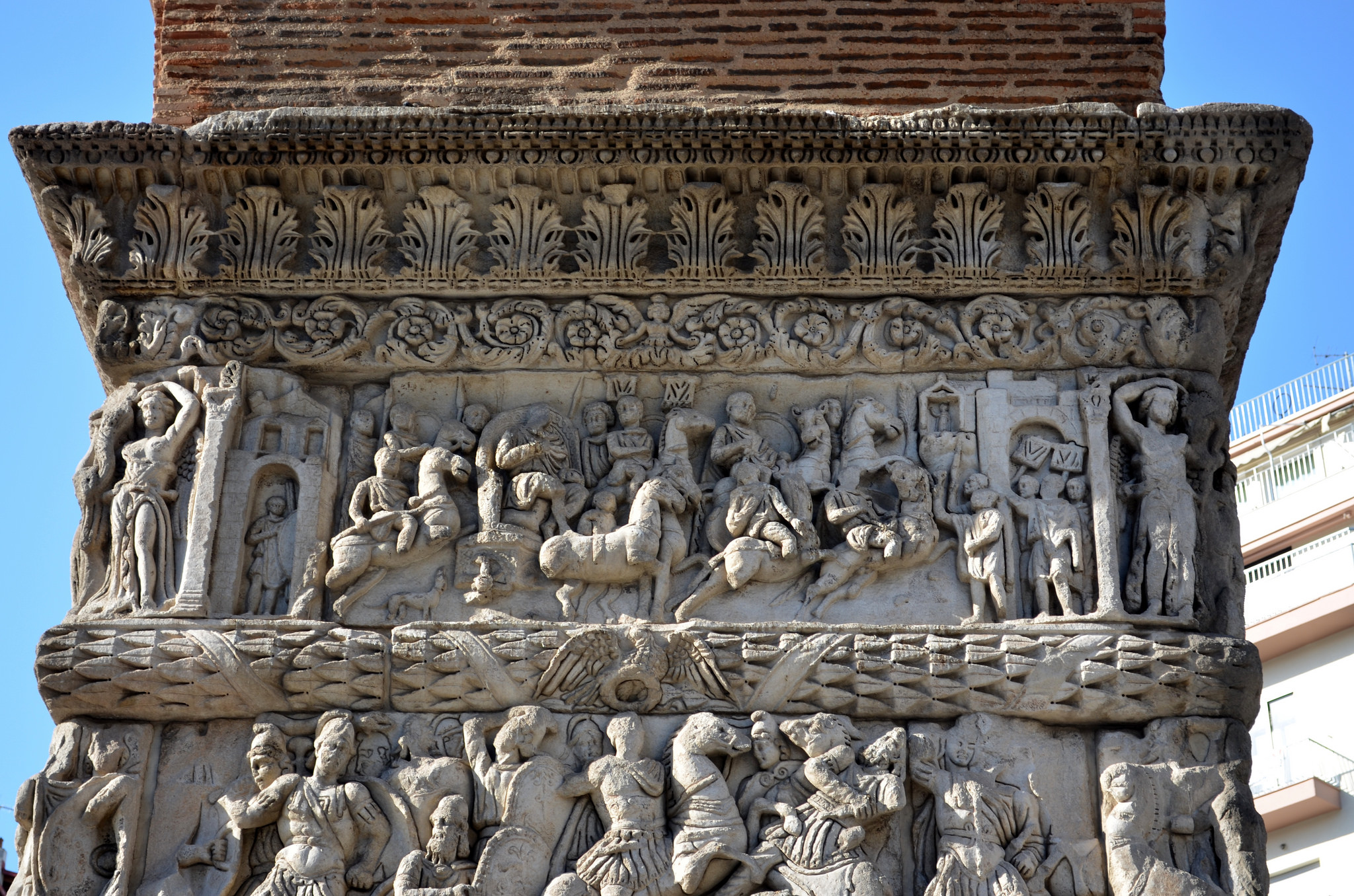 Thessaloniki Sights & Monuments - The Arch of Galerius, commonly referred to as the Kamara, is a renowned monument situated at the intersection of Egnatia and Demetriou Gounari Streets, in the heart of Navarinou Square in Thessaloniki, Greece. First constructed approximately 305 AD, this remarkable quadruple arch was part of a vast building complex, which also housed the Galerius Palace, the Hippodrome, and the Rotunda. The Kamara was originally built as a tribute to the triumphs of Emperor Galerius over the Persians. Today, the Kamara is a beloved landmark in Thessaloniki and serves as a popular passageway and gathering spot.