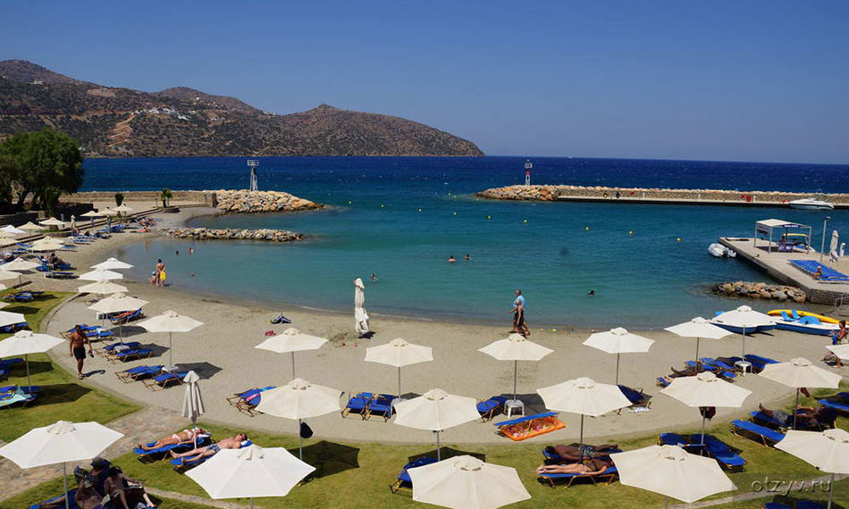 Agios Nikolaos Beaches - Mirabello Beach in Agios Nikolaos, Crete is a picturesque location situated just 2 km north of the town. One of the main attractions of this area is the historic Mirabello Hotel, which is located right in front of two stunning bays that are home to two charming beaches. The beach next to the hotel features a small marina and platforms. Both beaches are expertly organized, with amenities such as showers, a bar, deck chairs, and parasols. The beaches are separated by a small (artificial) peninsula that is surrounded by lush trees. It's important to note that while the beach is often referred to as Havania Beach North, its true name is Mirabello Beach.