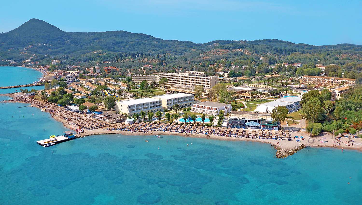 Corfu Beaches - Messonghi Beach in Corfu, Greece is a charming village located just 22 kilometres east of Corfu Town. What was once a humble fishing village has transformed into a vibrant tourist destination. Visitors can enjoy a plethora of tourist facilities and experience the warm and welcoming atmosphere of the locals. The beach at Messonghi is situated atop a hill, offering breathtaking views. It's also an ideal place for swimming, with safe waters suitable for children. For those seeking water-based activities, there are plenty of options to choose from, including jet skiing and speed boat rentals. Book your trip to Messonghi Beach in Corfu for an unforgettable holiday experience.