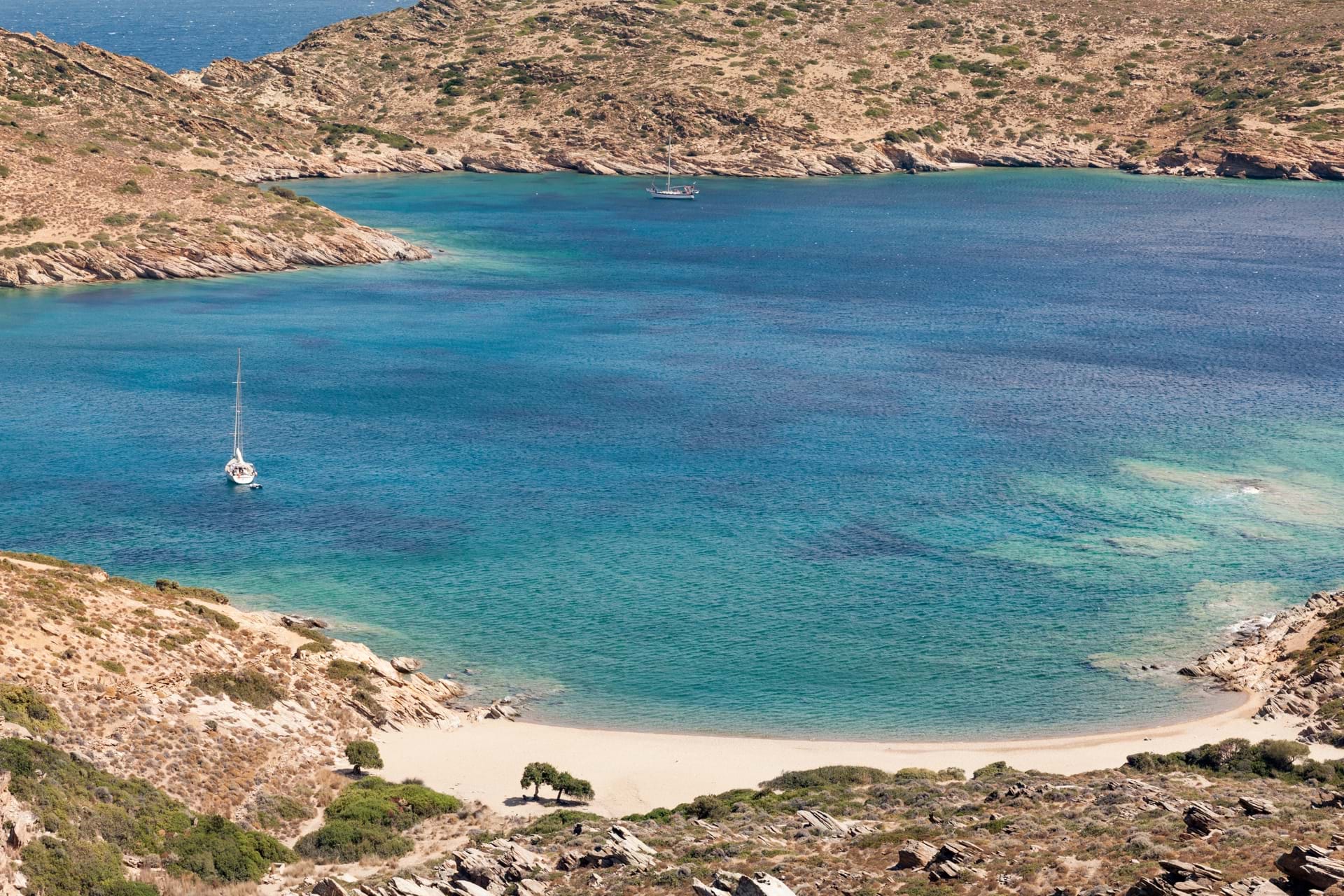 Ios Beaches - Tris Klisies Beach in Ios, Greece is a stunning beach situated on the southern part of the island. If you're looking for a secluded spot, this beach is perfect for you. It's also a popular destination for nudists. To get to Tris Klisies Beach, you'll need to hike along a small path for approximately 10-15 minutes after leaving your car. Once you arrive, you'll be greeted by golden sand and crystal-clear blue waters, offering a unique diving experience and the opportunity to relax while taking in an extraordinary view of the surrounding area. In addition, the rocky coastline bordering the beach is an excellent spot for boat exploration.