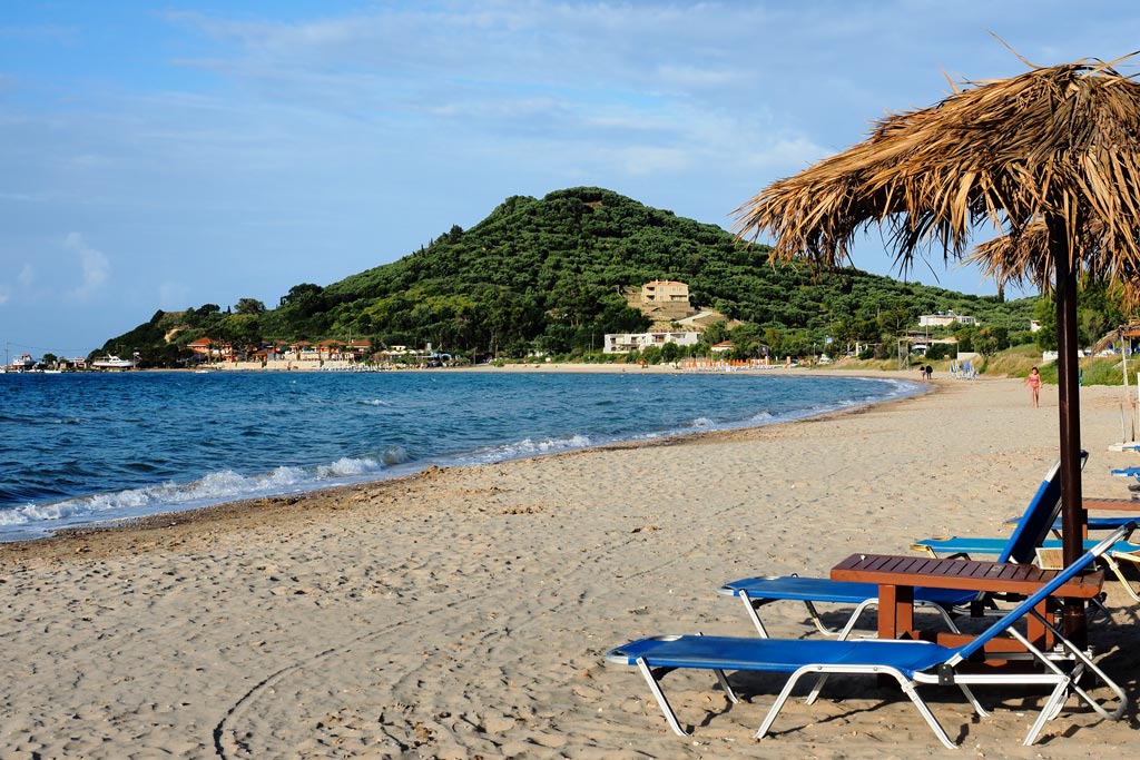 Zakynthos Beaches - Alykanas Beach in Zakynthos, Greece is a well-known destination located just 16 km southeast of Zakynthos town. It's conveniently situated within walking distance of the neighboring resort of Alykes. This long, sandy beach offers visitors all the necessary facilities for a comfortable and enjoyable stay. Tourists can enjoy a wide range of amenities, including luxurious hotels, apartments, villas, cafes, restaurants, and water sports activities. While it can get quite crowded during the high season, Alykanas Beach in Zakynthos is definitely worth a visit.