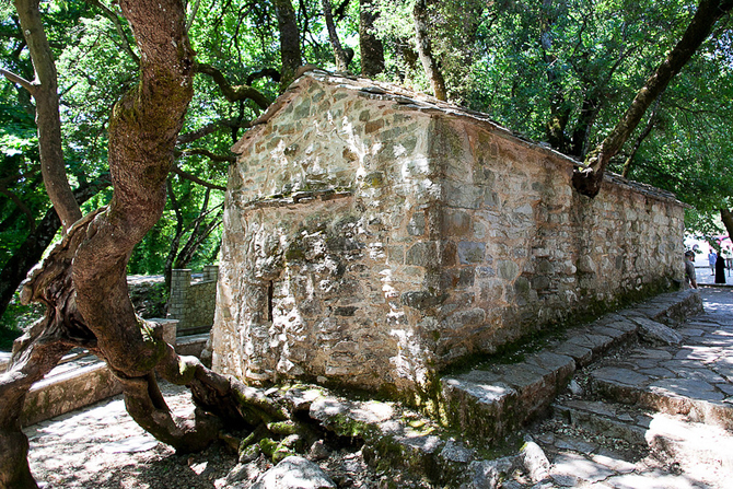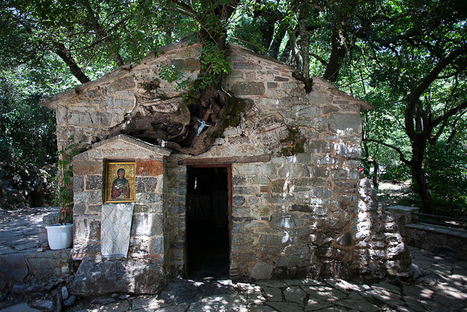 Arcadia Churches & Monasteries - The Agia Theodora Church in Arcadia, Peloponnese is a beautiful Byzantine church situated close to Vasta village in Megalopolis. One of the unique features of this church is the stunning sight of seventeen colossal trees that have grown on its roof. Additionally, a refreshing spring emanates from its base, adding to its charm. Legend has it that the Agia Theodora church was constructed on the very spot where St. Theodora was tortured and martyred. She uttered her last words, "My body should be a church, my blood water, and my hair trees." This church holds a significant place in Greek Orthodox Christianity and is a must-visit destination for tourists and pilgrims alike.