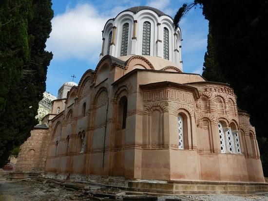 Chios Churches & Monasteries - Nea Moni in Chios, Greece is a must-visit destination for history buffs. Built during the 11th century by the Byzantine Emperor Constantine IX, this monastery is one of the oldest in Chios. Boasting a large area, Nea Moni was once home to 800 monks and was incredibly wealthy. However, after the 17th century, the monastery's fortunes declined, and it was not the same after the Ottomans destroyed Chios in 1822. Today, only three monks live in the complex, which includes the catholicon, cells, a dining room, and a small chapel to Saint Luke surrounded by walls. While Nea Moni has decreased in size over the centuries, its historical significance remains. Visitors can admire the centuries-old frescoes that adorn the walls of the church. Don't miss your chance to experience the rich history of Nea Moni in Chios, Greece.