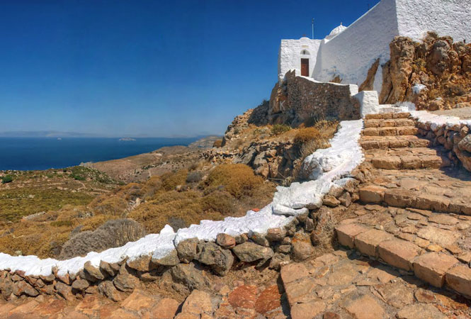 Patmos Churches - The Prophet Elias Church in Patmos, Greece is a must-visit site located at the island's highest point. This majestic church is situated south of Chora in the western region and was built by a monk back in 1764 at a staggering height of 270 metres above sea level. Apart from its historical and religious significance, the church's strategic location offers a breathtaking panoramic view of Turkey, Lipsi, and Leros. Don't miss out on this amazing destination while exploring the beautiful island of Patmos, Greece.
