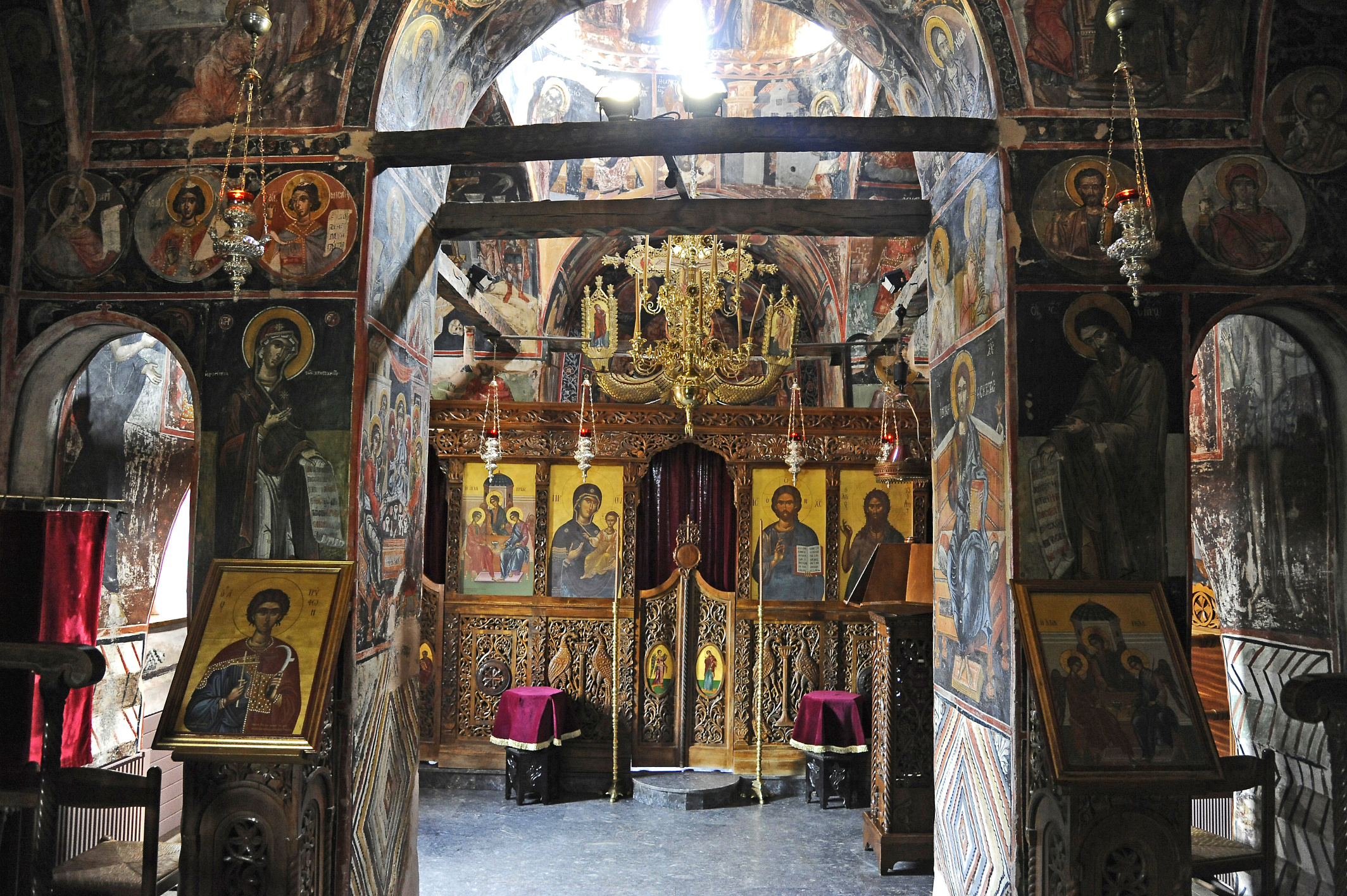 Meteora Churches & Monasteries - The Agia Triada Monastery in Meteora, Greece is a remarkable site, albeit challenging to access. According to legend, it was founded by monks seeking sanctuary from Ottoman invaders. Sadly, it sustained significant damage during World War II. Despite this, visitors can still make the ascent up around 140 steep steps to explore the monastery. Today, only one monk remains and acts as a guide. Within the complex, visitors can discover a church, courtyard, and several chambers adorned with meticulously maintained frescoes. Discover the secrets of Agia Triada Monastery, a hidden gem in Meteora, Greece.