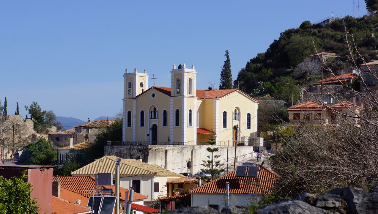 Kyparissia Churches & Monasteries - The church of the Holy Trinity (Agia Triada) is located in the old town of Kyparissia in the Peloponnese. The church is dedicated to the Holy Spirit, the saint protector of the town, and celebrates every year 40 days after Easter. On the day of the Holy Spirit, there is a three-day festival taking place in the upper town of Kyparissia with live music, dancing, and a feast right in front of the church of Holy Trinity. This church was built on the ruins of an ancient temple, and its location offers an amazing view of the sea.
