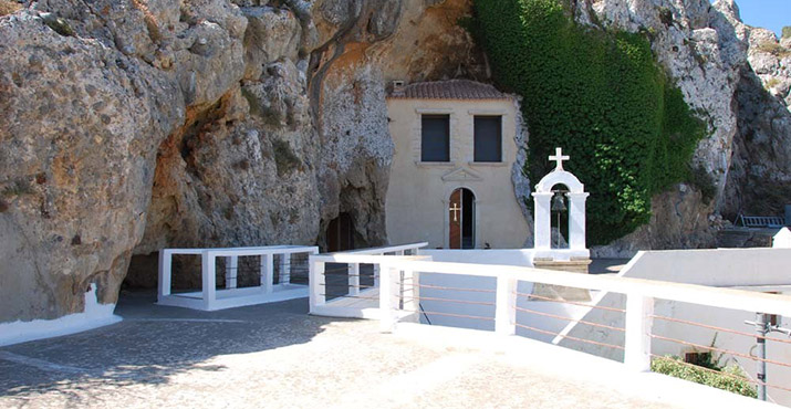 Lasithi Churches & Monasteries - The Faneromeni Monastery in Lasithi, Crete is a must-see for any visitor to the area. This male monastery is situated on a steep slope at an altitude of 540 metres, offering breathtaking views of the sea. It is dedicated to the Virgin Mary and Zoodohos Pigi, and the church is built inside a cave with two aisles. The monastery is a popular destination, drawing pilgrims from all over Crete, especially on August 15 when it is celebrated.