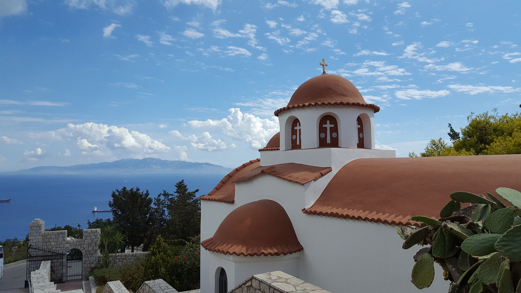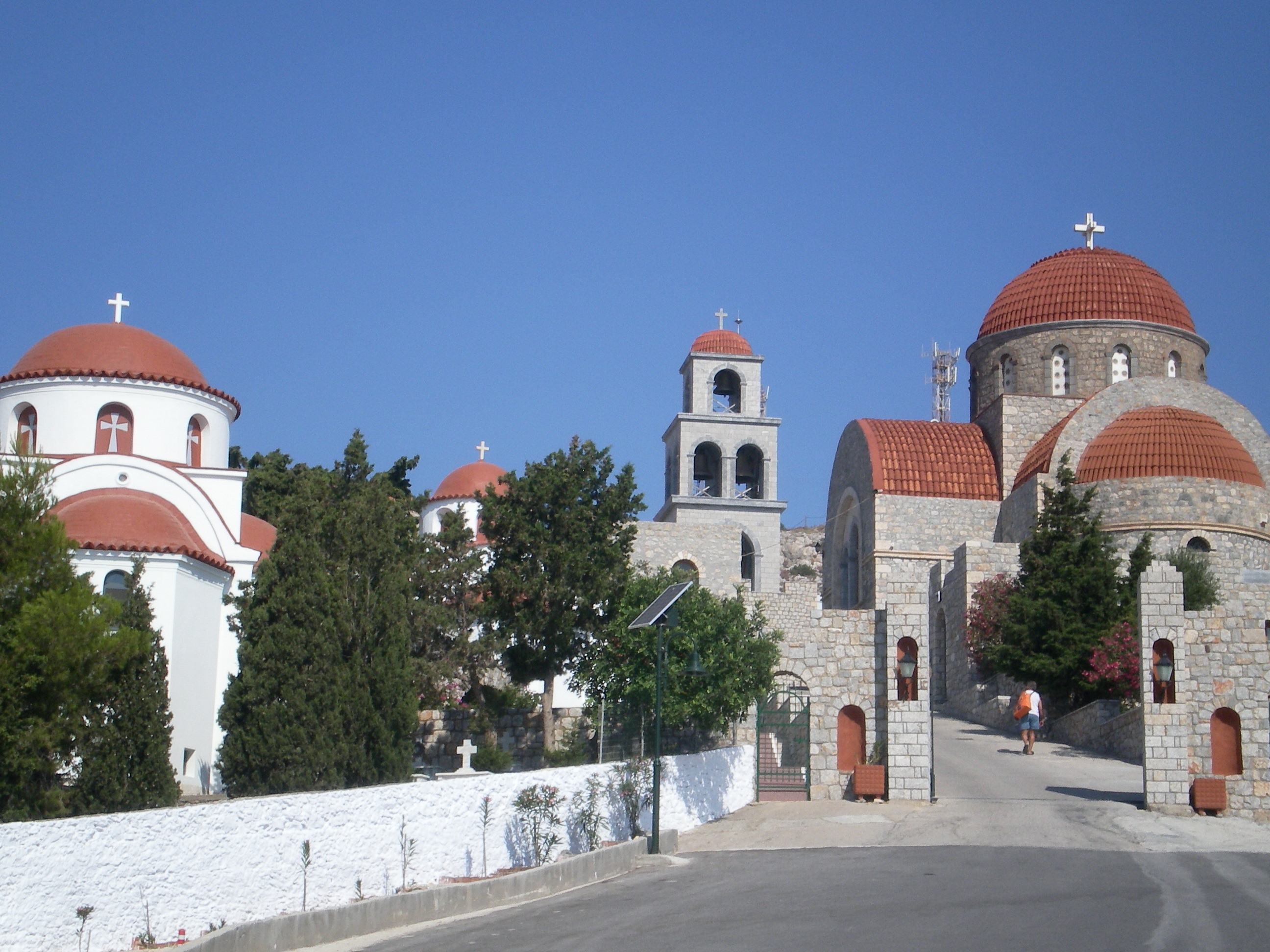 Kalymnos Churches & Monasteries - Agios Savvas Monastery in Kalymnos, Greece, is a stunning stone church dedicated to the island's patron saint. Perched atop a hill above Pothia Town, the capital of Kalymnos, this beautiful monastery boasts a striking red tile roof and breathtaking views of the town, port, and sea. Nestled nearby is the equally impressive Agioi Pantes monastery. For a truly unforgettable experience in Kalymnos, be sure to visit Agios Savvas Monastery.