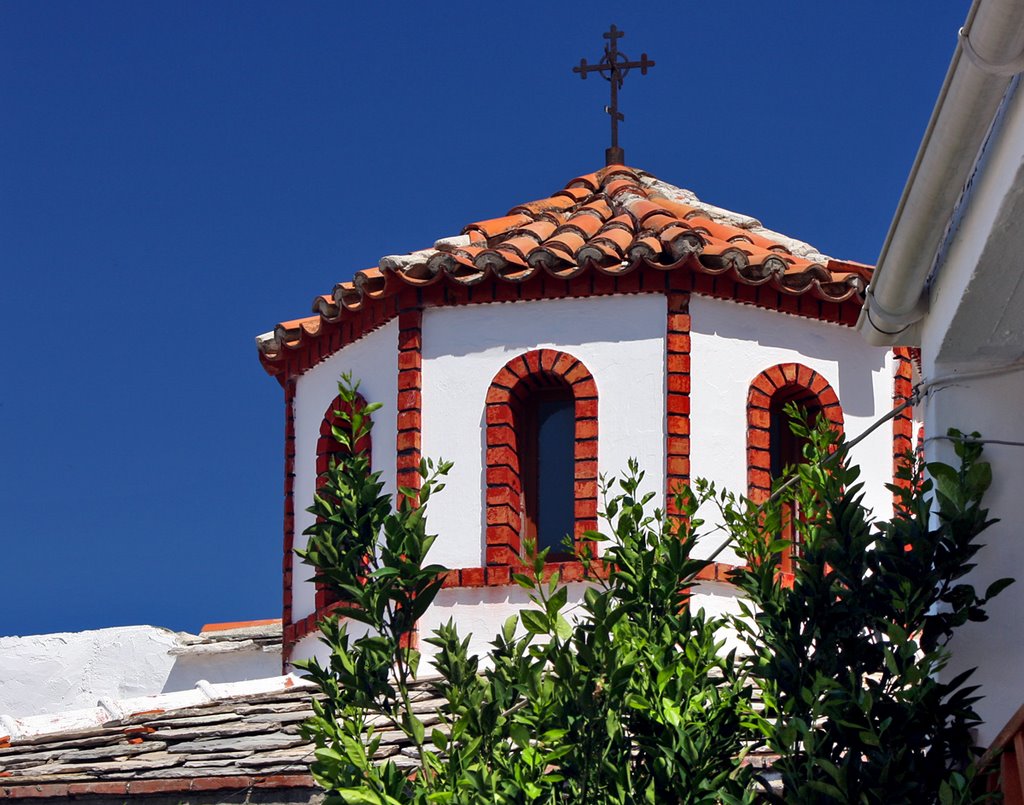 Skopelos Churches & Monasteries - The Evangelistria Monastery in Skopelos, Greece is a must-see for history buffs and architecture enthusiasts. Situated just 3.5 km east of Skopelos Town, this post-Byzantine monument is steeped in history. Originally constructed in 1712, the monastery underwent significant renovations in the mid-18th century courtesy of the esteemed Daponte family. Its fortress-like architecture is a sight to behold, as is the stunning 18th-century wooden-carved iconostasis created in a Constantinople workshop. The monastery boasts an impressive collection of Byzantine and post-Byzantine icons. Climb the slopes of Mount Palouki to take in breathtaking views of Skopelos Town and the Aegean Sea from this magnificent hillside monastery. Plan your visit to the Evangelistria Monastery in Skopelos, Greece today.