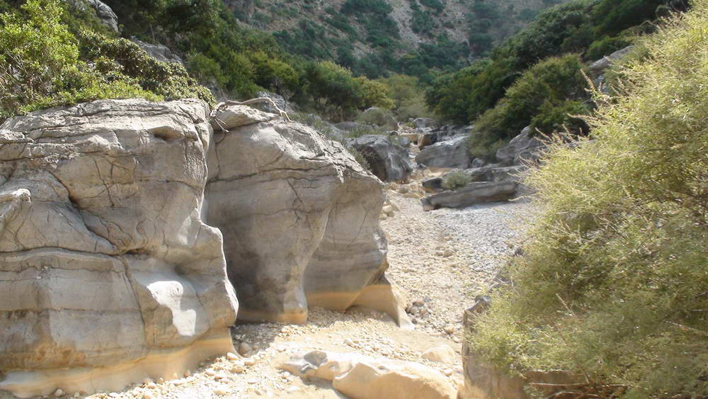 Heraklion Gorges - Aposelemis Gorge in Analipsi, Crete is the most significant geological canyon in the Northern region of Crete, conveniently located near the resort of Analipsi. The Aposelemis River runs through the canyon, which only has water after heavy rain, while the river flows during all wet months. The gorge presents an excellent opportunity for hiking and exploring the surrounding areas, where a path is provided for easier access. The canyon boasts of old trees such as oak, holly, holm, carob, osier, and others. To access Aposelemis Gorge in Analipsi, take the north exit and follow the dirt road from the old national bridge to the canyon. The trail starts after passing the picturesque, abandoned village of Plevris and under the new highway bridge. Allow at least two hours to cross the canyon.