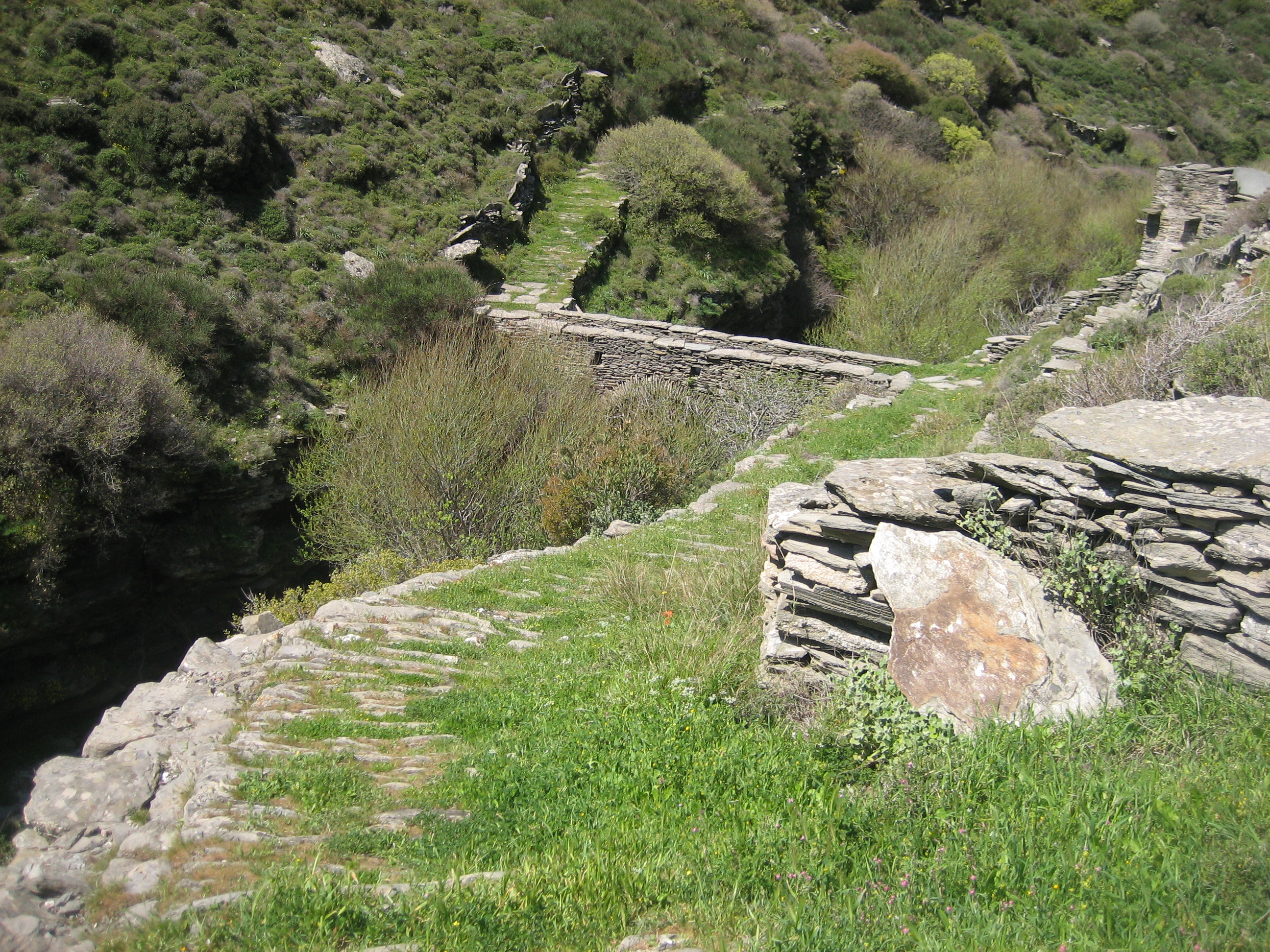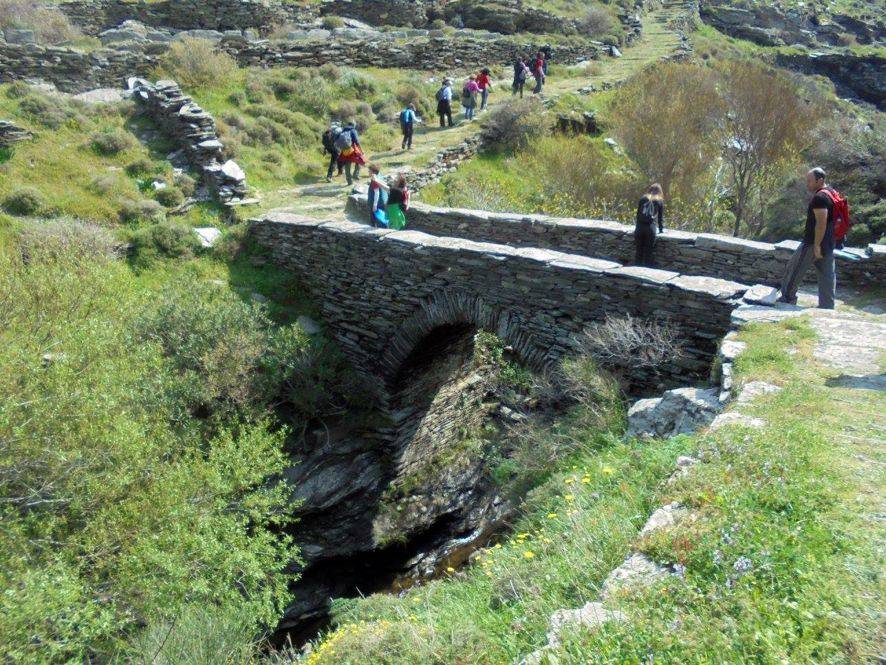 Andros Gorges - Dipotamata Gorge in Andros, Greece is a stunning natural wonder that spans over 7 kilometers, nestled between the charming settlements of Syneti, Paleokastro, and Kochylou. As you explore the gorge, you will be surrounded by dense vegetation and a plethora of extraordinary animals and birds. Even during times of drought, the water flows ceaselessly through the gorge. This natural environment has been well-preserved as the paved path that once served as a primary network has remained unused for the last 60 years. Along the way, you will come across an arched stone bridge where the path meets the river. In addition to the paths, you will also witness the ruins of historic stone walls, watermills, outbuildings, pens, huts, and threshing floors. The watermills are the most significant structures in the area, with only 22 remaining mills preserved, abandoned, or ruined across the gorge. Come and experience the wonder of Dipotamata Gorge in Andros, Greece.