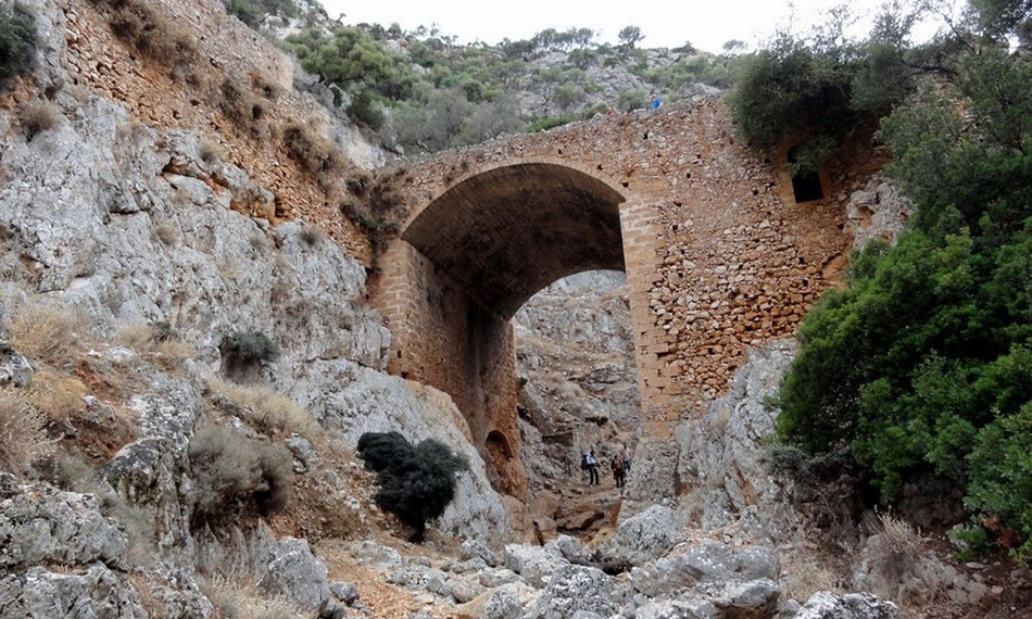 Chania Gorges - The Avlaki Gorge in Chania, Crete is a significant religious site located just 16 km east of Chania City, near Gouverneto Monastery. The gorge served as a refuge for monks who sought shelter in its caves. One of the most ancient religious temples in Crete, the famous Catholics Monastery can be found inside a small canyon in Avlaki. Because of this association, the valley is sometimes referred to as Catholic. Hiking trails begin at Gouverneto Monastery and lead to the Catholics, providing easy access to the gorge's top and sides. Although the walk up the mountain is relatively effortless, there are short, steep intervals along the way. The route takes hikers past the Arkudiotissa Cave, where an ancient temple dedicated to the goddess Artemis once stood. The trail then leads to the abandoned Catholics Monastery and the Church of St. John, which was once inhabited. When exploring the cave, be cautious as it is incredibly deep, measuring 151m. Carry a flashlight if you decide to venture inside. From the monastery, the path runs along the channel and exits the canyon, leading to the sea. Experience the historical and religious significance of the Avlaki Gorge in Chania, Crete by visiting this magnificent destination.
