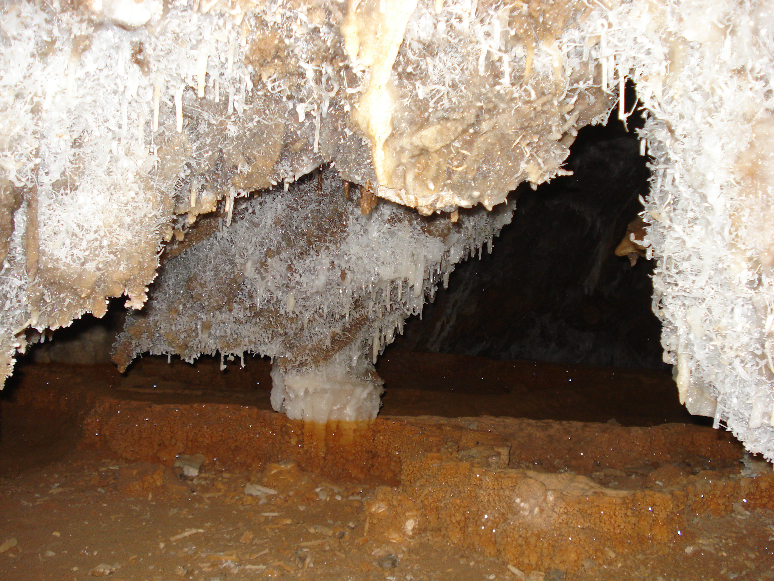 Walking through the dry riverbed of the underground river feels like navigating a labyrinthine canal system that was created by the river in the past. Selinitsa Cave belongs to the same karstic system as the Dragon River, which still outpours its waters underground at a depth of 10 meters from sea level.