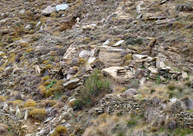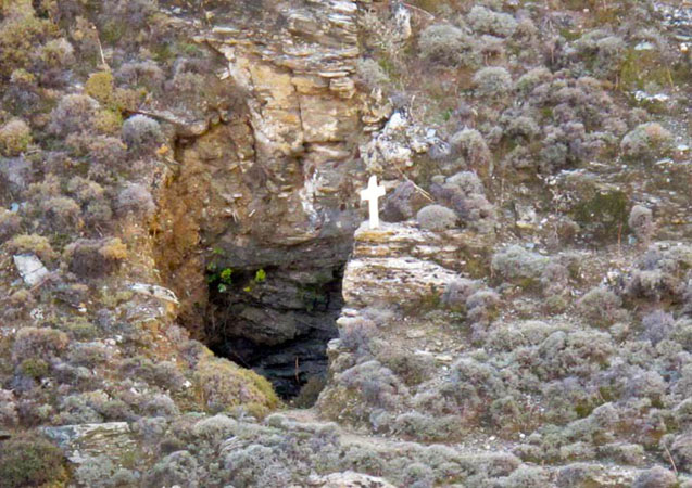 Tinos Caves - Drakolaka Cave in Tinos, Greece is located just 4 km from the village of Platias and only 1 km from the picturesque Vathi Bay. The cave is named after the "dragon," a local term for the "cyanosis" disease. In the past, locals brought children affected by this illness to the cave where they changed into light-colored clothing. Over the course of three nights, the thermal properties of the cave were believed to aid in their treatment. Survivors were considered to be healing and this tradition continued for generations. Visit Drakolaka Cave in Tinos for a unique and historical experience.