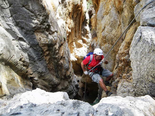 The Tsoutsouros Gorge in Tsoutsouros, Crete, is a stunning canyon that is perfect for beginners looking for a thrilling adventure. With a length of just over 1.5 km, the gorge starts in the village of Tsoutsouros and is only accessible with special climbing equipment. One of the largest runs in the gorge is about 30 metres, but the most extreme and picturesque spots are located at the exit of the gorge. In the winter, Tsoutsouros Gorge is filled with water, adding to the excitement. Just west of the gorge is a smaller canyon called Trulli, also known as Little Tsoutsouros of Crete. This hidden gem has become a popular spot for avid canyon fans. Experience the beauty and thrill of the Tsoutsouros Gorge in Tsoutsouros, Crete.