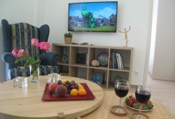 Located in the center of Athens, close to the Akropolis Museum and Akropolis Metro Station, Elegant Acropolis provides free WiFi, air conditioning, and basic conveniences like a coffee maker and refrigerator. It has a lift and is located 700 meters from Syngrou/Fix Metro Station. The apartment has three bedrooms, a living room, a flat-screen TV, a kitchen with an oven and a toaster, two bathrooms with a walk-in shower, and a balcony with views of the city. The unit is furnished with bed linens and towels. The Parthenon, Anafiotika, and Odeum of Herodes Atticus are well-liked tourist destinations close to the Elegant Acropolis. Eleftherios Venizelos, the closest airport, is 30 kilometers from the accommodation.