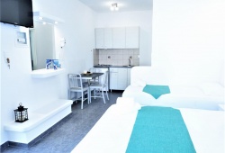 Anemos Studios, which are located in Adamas on Mylos Island, Greece, offer a warm and welcoming atmosphere that is perfect for a relaxing getaway. Situated only 300 meters from the harbor and 50 meters from the sea, Anemos Studios offers newly constructed, completely furnished studios and apartments. They come with a refrigerator, a cooker, a TV set, air conditioning, and hair-drying facilities. Anemos Studios on Mylos Island offer excellent service, daily cleaning of the premises, and reasonable prices. Discounts are given during the low tourist season, and group rates are available. Because it has so many cafés, restaurants, supermarkets, pharmacies, stores, and bars, the little village of Adamas, where Anemos Studios are located, is regarded as a main tourist destination. Make the stunning Greek island of Mylos your next travel destination and choose Anemos Studios for your place to stay.