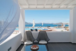 Miland Suites, located in Kanavas, are built on a scenic hill in Korfos, only 2,5 kilometres from the main port of Mylos, Adamantas, one of the greatest natural bays in the Mediterranean. Miland Suites, with a view of all four cardinal points, overlook the Aegean Sea. Here, on a site of 6.5 acres, 8 different suites are waiting for you, made with good taste and affection for your hospitality only, reflecting the Cycladic aesthetics. It offers uniquely decorated suites with a spacious balcony or terrace. With tasteful furniture and muted hues, the junior rooms provide either partial or full views of the Aegean Sea. Each has a coffee maker, a flat-screen TV with satellite programming, and air conditioning. A hair dryer and a shower cubicle are included in the contemporary bathroom. Every day, the dining room serves an American-style breakfast enhanced with handmade flavors and regional specialties. You may also have coffee and drinks near the swimming pool. Miland Suites is located 2.5 kilometers from Mylos National Airport and Adamas Port. Achivadolimni is 5 km distant, and picturesque Plaka Town is 4 km away.