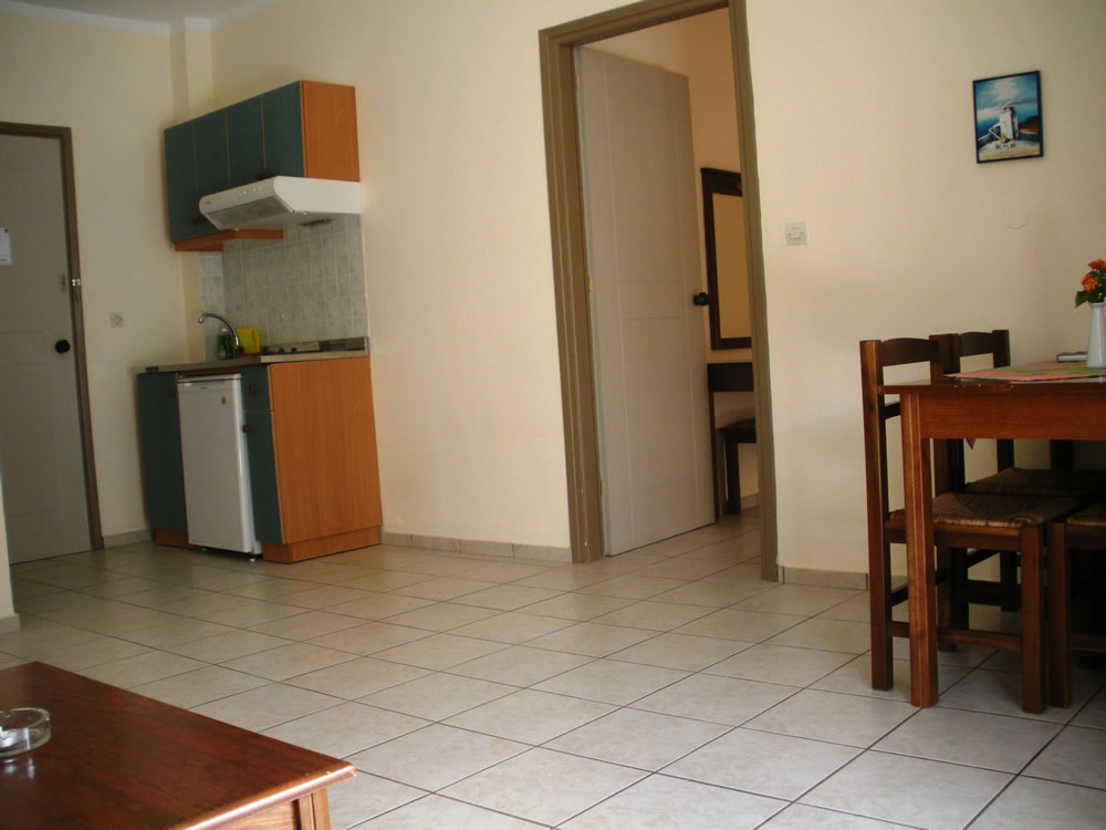 Matthias Hotel Apartments is located in Adelianos Kampos, 7 km east of Rethymnon and is easily reached by bus (approximately every 20 minutes) the bus stop of which is about 50 metres away from the hotel. Heraklion is 75 km to the east and Chania is 65 km to the west, approx. There are 17 units 13 of which are studios with 2 or 3 beds, and the rest are apartments with two spaces and four beds in total. The main amenities feature a kitchenette to prepare your own meals, air condition, safe box and a private balcony. There is an adult and children's pool, as well as sun beds free of charge. There is a bar for refreshing drinks, a spacious lounge with a TV set, and a reception desk all on the same level. If you are searching for a self-catered accommodation in Rethymnon, Matthias Hotel Apartments in Adelianos Kampos is the best place to be.