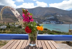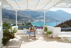 Amorgi Studios is situated in a serene and picturesque area on the Aegiali beach in Amorgos, offering peace of mind together with convenient access to the village, the stunning beaches nearby, and the constantly bustling Aegiali. Every spacious studio and apartment opens to a furnished patio or balcony that provides shelter and views of Aegiali Beach. They have a kitchenette or kitchen with a little oven with cooking hobs, fridge, and coffee machine, and they are decorated in pastel colors. There's satellite TV and air conditioning. The reception desk can assist you about your stay and Amorgos island, services such as boat rentals, activities such as diving, hiking, fishing and different cruises.