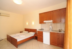 Situated right on the beach of Agia Marina in Chania, Georgina Apartments features an outdoor pool with separate children’s section. Set amidst a palm-tree garden, it offers self-catered accommodation with a balcony and free Wi-Fi. A flat-screen TV with satellite channels and a safe are features found in all air-conditioned studios and apartments. Each contains a kitchenette with a fridge, cooking range, and coffee machine, and is decorated in shades of gray and blue. Certain types of accommodation have views of the Cretan Sea. Within easy walking distance of the hotel are a number of bars, restaurants, and supermarkets for guests to choose from. Georgina Apartments is situated 17 miles from Souda Port and 9 km from the picturesque Chania Town. It is 25 kilometers to Chania International Airport. Agia Marina is the perfect place for solo and family vacations in Crete, offering all you need. Click the Book Now! button and compare rates offered by various online booking services.