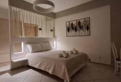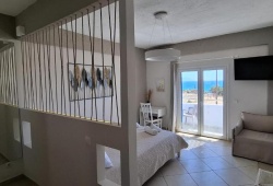 One of the most stunning beaches on Kythira Island, Agia Pelagia, is home to Pelagia Beach Studios, which is situated in a wonderful, peaceful area. From the apartments, you can walk 150 meters straight to the beach. The complex is made up of ten large studios, most of which have views of the sea and Agia Pelagia's charming harbor, creating a magical frame with a view of the Aegean Sea. They offer air-conditioned studios with kitchenettes, balconies, and private bathrooms. Each room includes a tea and coffee maker, hairdryer, Wi-Fi, and dining table. You may find everything you need for souvenirs and gifts in the property's store, which is only 200 meters away in the center of Agia Pelagia. Venetian Castle, Monastery of Panagia Myrtidiotissa, and Loutro tis Afroditis are some of the nearby tourist attractions. Pelagia Beach Studios is thirteen kilometers from Kythira Island National Airport.