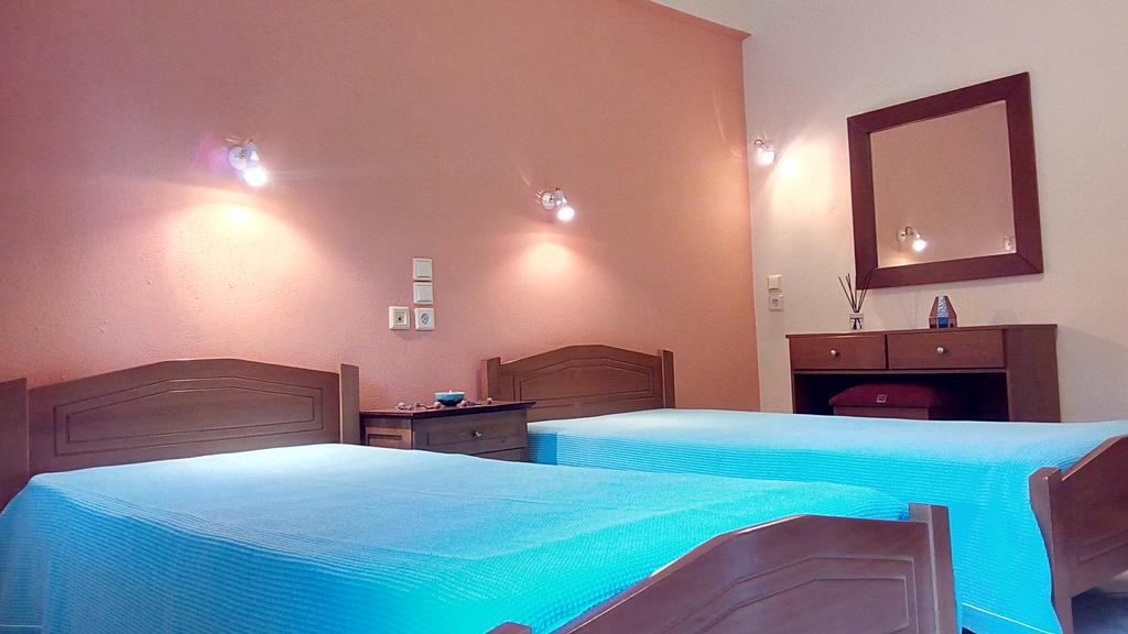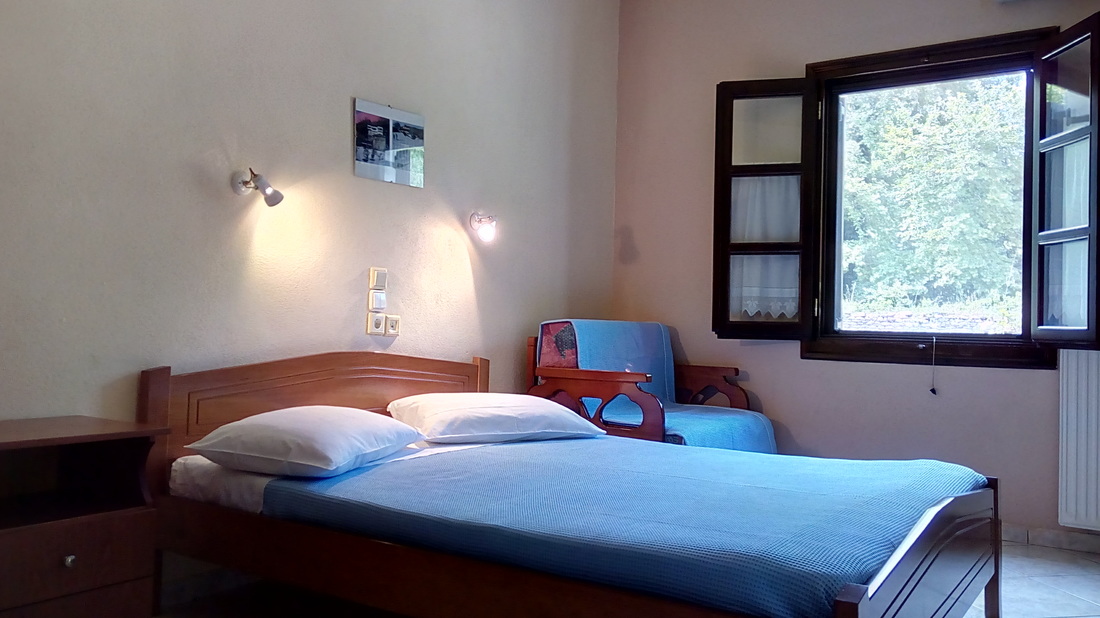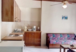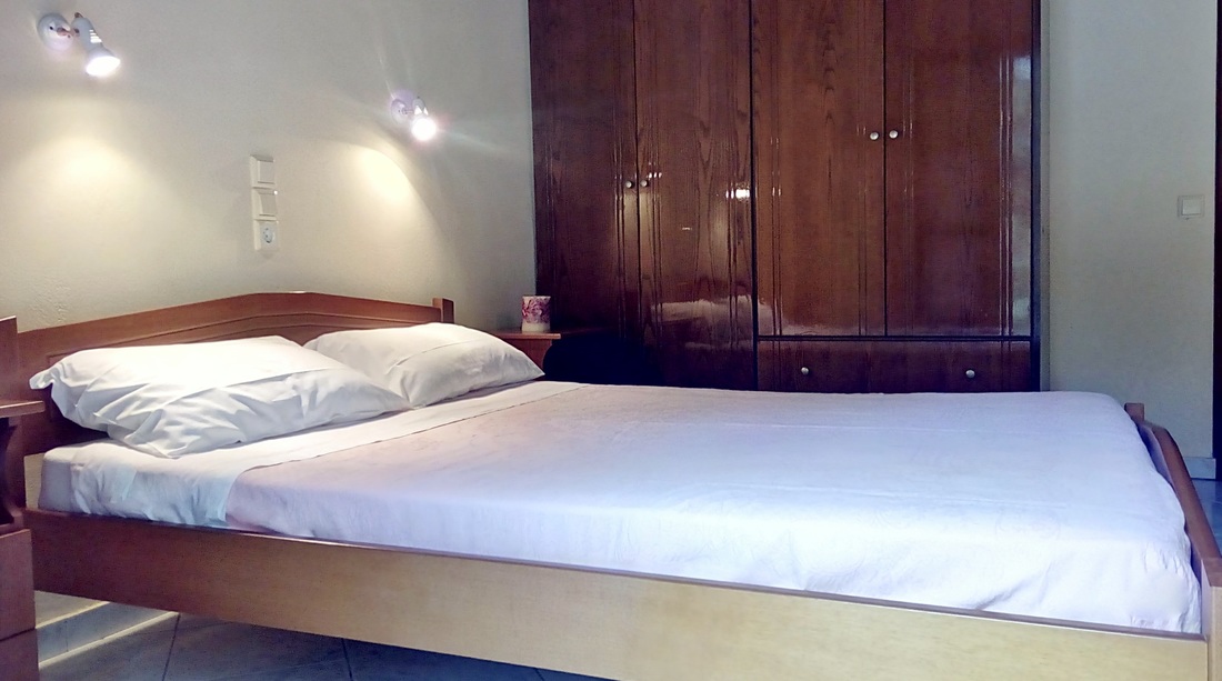 At Chara Studios & Apartments, there are ground level and first floor apartments that can house two to three people, as well as triple and double studios. A fully functional kitchen, a double bed or two single beds, a couch bed that can be made into a comfy bed that's great for kids and adults, and a private bathroom are all included in the studios.
