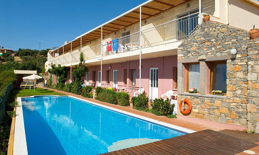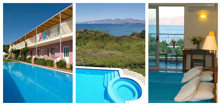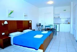 The beachfront Mirabella Apartments are set in a beautiful spot, with all the apartments enjoying views of Mirabello Bay. The studios and apartments at Mirabella hotel may accommodate up to four people for families or couples. Every studio and apartment has an own balcony with a view of the sea and is equipped. Free wi-fi, individually controlled air conditioning, and a fully furnished kitchen with a toaster, kettle, refrigerator, and cooking utensils are features of every apartment. Cleaning services and private bathrooms are included in the rooms. Choose from five types of apartments: two-room studios or apartments with two rooms that can house up to four people.