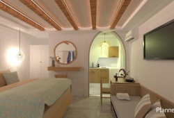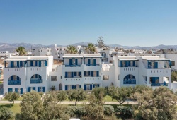 For individuals seeking a sophisticated and luxurious hotel with a view of the sea, the luxurious suites and apartments are the perfect option. The Cycladic architectural style of Alykes Studios & Suites combines white and blue with indigenous elements like marble in its design and construction. A memorable vacation is assured by the thoughtful selection of premium building materials that maximize the structure's insulation against heat and sound, the contemporary conveniences, the superior accommodations, and the general atmosphere of Naxian hospitality that surrounds the hotel. They range in style from traditional studios to luxurious suites and family apartments; all are spacious and cozy, fusing contemporary furnishings with the historic beauty of the Cyclades, featuring breathtaking balcony views. The beach bars, taverns, and cafe bars are all within walking distance of Alykes Studios & Suites. There is a super market 100 meters away for your necessary needs. Set your destination plan for Agios Prokopios in Naxos and book your stay at the Alykes Studios & Suites for a dreamful vacation.