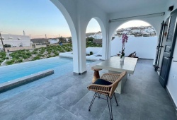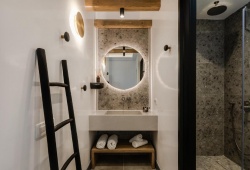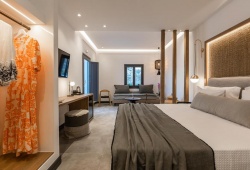 With Santorini's Vineyards as its background, Vineyard Luxury Suites in Santorini artfully combines the newest styles with the kindest hospitality available. Located in akrotiri, it has four luxurious apartments with a bohemian-chic aesthetic. Every one of the four suites has been thoughtfully chosen and tailored to cater to the various demands of exceptional visitors. Each of them has an elegant interior design, high-end furnishings, a modern layout, and modern conveniences that are expertly blended with a boho vibe. The bohemian-chic Exclusive Suites are furnished with a seating area, a flat-screen TV with satellite channels, a refrigerator, a safety deposit box, a welcome basket, air conditioning, and a private bathroom with a shower, bathrobes, and slippers. Bed linens and towels are provided in every room at Vineyard Exclusive Suites. Hotel amenities feature a swimming pool for your relaxation and wireless internet is covered throughout the property.