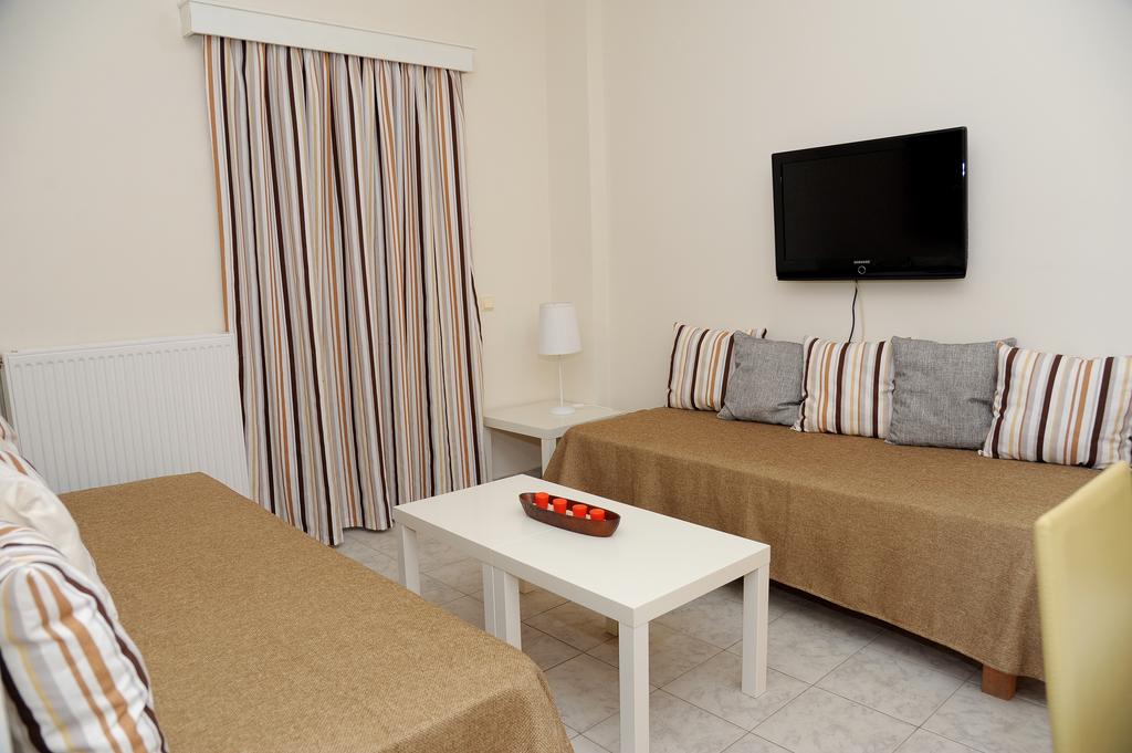 A satellite TV is in Volnakis' spacious apartments. Each has a kitchenette with a stove and a separate dining area. A hairdryer is in the bathroom. 24-hour room service is also available.