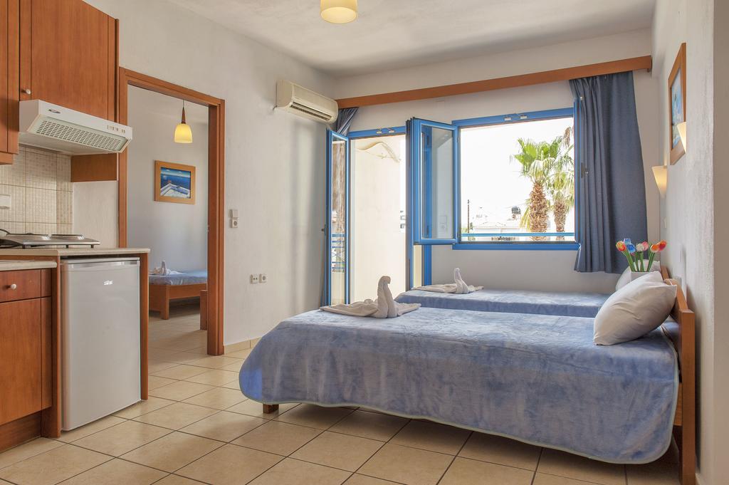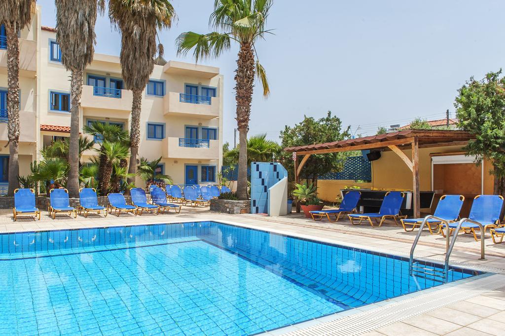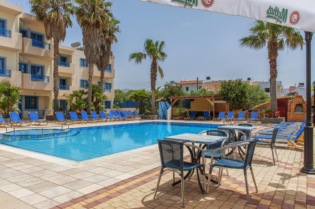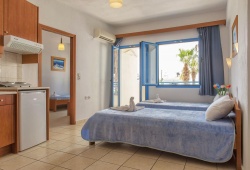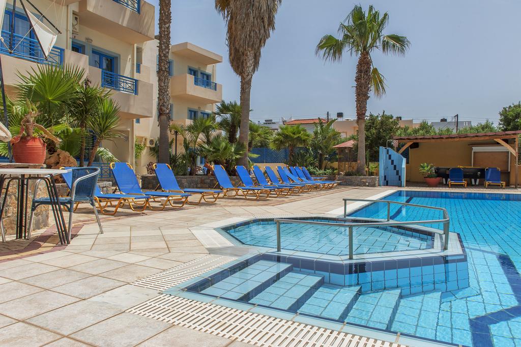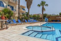 The sandy Analipsi beach in Hersonissos is at a short distance from the Nana-Angela Apartments. The apartments are ideally placed in Analipsi (80 m), on the northern coast of Crete, just a 5-minute drive from the more populous, cosmopolitan town of Hersonissos, and 18 km from Heraklion International Airport. The pool bar is located by the pool and opens immediately after breakfast, serving a variety of snacks, beverages, and light meals that are prepared in-house until late in the evening.
