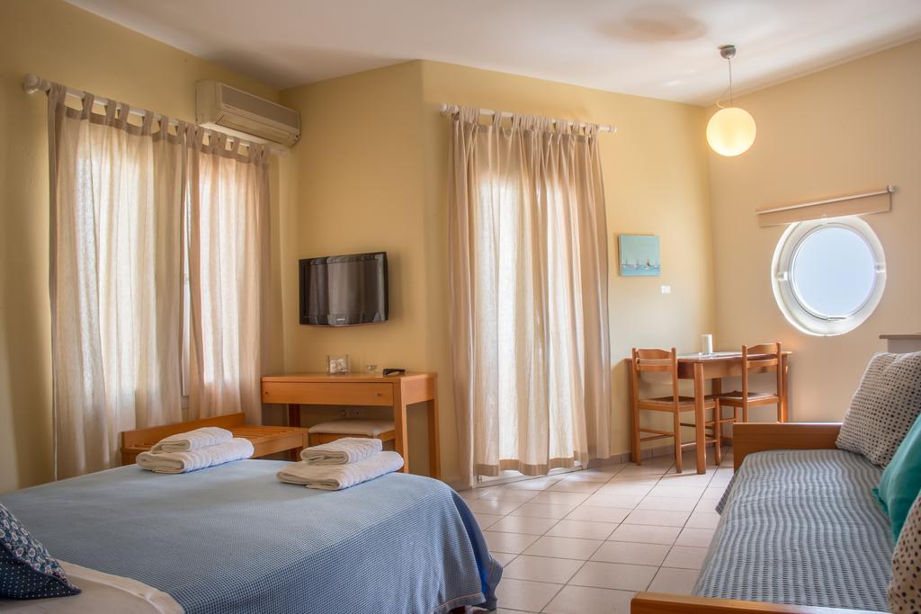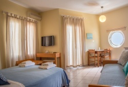 Alkyoni Studios are situated 20 meters away from the sandy beach of Neiborio in Andros Town or Hora. Every spacious studio has a separate entrance and a balcony with a view of the sea. Every studio has air conditioning, a kitchenette with a refrigerator, an electrical stove, a kettle, and a coffee maker, as well as a bathroom. Mini markets, coffee shops, and restaurants are all rather near by. Alkyoni Studios is conveniently located near Hora or Andros Town's main pedestrian street, which is home to several museums, charming alleyways and neoclassical buildings. If you have any questions concerning your stay or any other information about the island, the property's owners will be happy to help. Why not visit the breathtaking island of Andros starting from Alkyoni Studios?