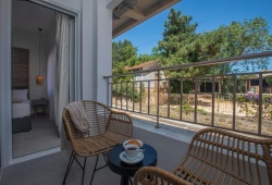 The apartments include everything a contemporary traveler may want. They offer a private balcony, two bedrooms with double beds, two bathrooms, and a fully functional kitchen. There is also a washing machine, aircondition and wifi. After a comprehensive renovation, Anemelia is ready to accommodate up to 4 guests per room in a serene setting with earth tones and basic furniture. Convenience and comfort makes Anemelia Luxury Apartments the perfect choice for your stay in Kefalonia.