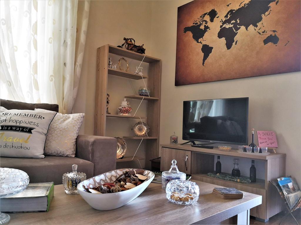 The main feature of Delphic Horizons is the fully equipped kitchen where you prepare your own food. With unlimited wi-fi connection, you may enjoy watching Netflix movies on our smart TV in the living area, which is equipped with a cozy corner sofa. The bathroom is pretty large and has a bathtub. It is completely furnished with a hair dryer, washing machine, first aid box, and cosmetics.