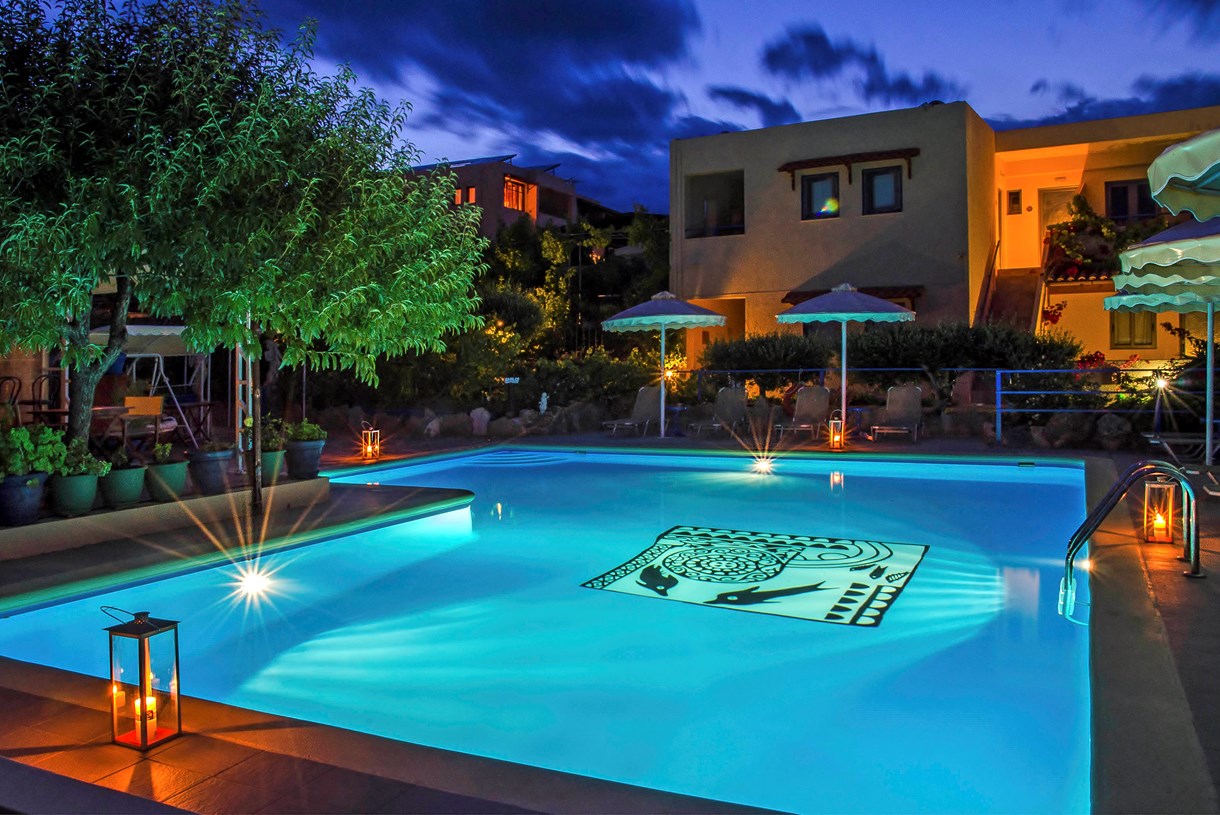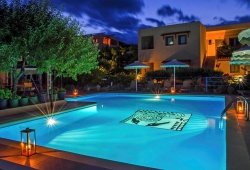 With nineteen studios and apartments, Elounda Heights is an adult-only resort situated on a hill with sweeping views of the stunning Mirabello Bay and the Venetian castle on the island of Spinalonga. It is located about 300 meters from the Cretan town of Elounda and is surrounded by lovely gardens with Greek statues that complement the complex's concept. Greek gods and goddesses are honored in the names of the apartments and studios. The facility is exclusive to people over 18 and provides breathtaking views in a serene environment.Spacious terraces, cozy verandas, balconies, and patios provide a clear view of the breathtaking Cretan mountains and the azure Mediterranean. All studios and apartments have a fully equipped kitchen, free air conditioning, and satellite TV, and free WiFi is available throughout the complex.