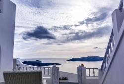 Things to know before booking Santorini View Studios is that the island of Nea Kameni, an active volcano, dominates the breathtaking views of the entire caldera that can be had from the cliffs of Firostefani. In the evening, one may take in the stunning sunset and the spectacular view of Fira itself. There are many restaurants and cafés in the the village with terraces perched on the cliff where you may lose yourself in a thousand-hued sunset. The Agios Nikolas Monastery, one of the most well-known views of Santorini, is located halfway between the villages of Firostefani and Imerovigli. The rock of Skaros, a historically significant area of the island that was home to a castle until the 17th century A.C., is another focal point of the vistas.