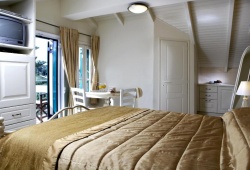 The Dafnoudi Apartments Hotel in Kefalonia is situated in the Antipata vilalge of Erissos, about 2.5 miles from the charming, little traditional village of Fiscardo. The hotel has typical Ionian Islands architecture and is situated in a prime location with a stunning view of the sea. The hotel consists of twelve completely furnished flats and apartments, each with an own entrance. Every studio and apartment has a balcony or patio with views of the ocean. Imagine waking up to the sight of the glistening blue sea outside your window every morning. That's the peacefulness and serenity that emanate from the Dafnoudi Apartments Hotel in Kefalonia.