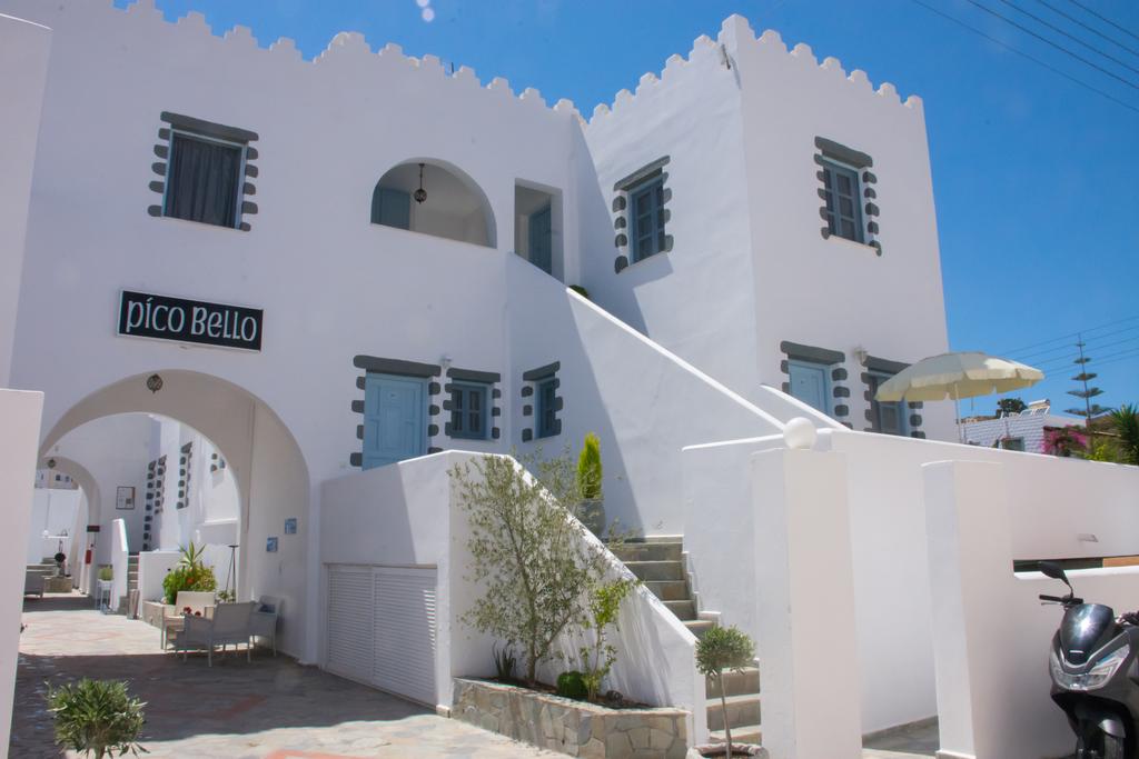 Because of the sailing boats that anchor in the settlement's port, the bay of Grikos, where Pico Bello is located, is the largest beach on the island and has a cosmopolitan atmosphere. The view of the Kalikatsos stone, a massive boulder connected to the earth by a tiny path and accessible by foot along the beach, is one of the landscape's most striking features. After traveling down a parallel road to the sea, the Grikos beach is around 3 kilometers from Skala, with which it is connected by frequent bus. There along the beach are sun loungers, and several little restaurants. If you are planning a trip to Patmos, Pico Bello is the ideal place to stay.