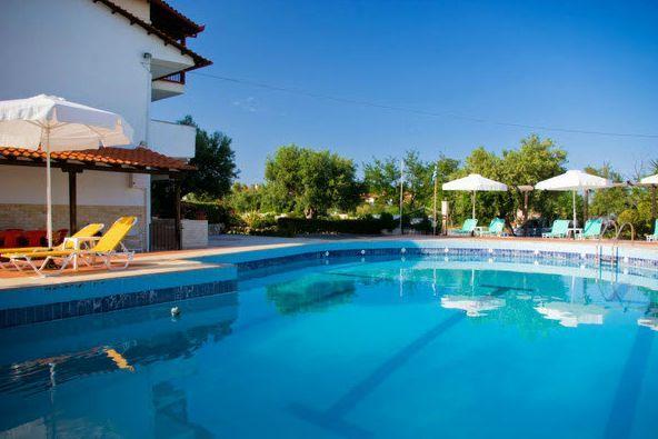 Situated in the well-known area of Kalithea on the Kassandra peninsula of Halkidiki, Aphrodite Studios is a family-run enterprise that is only 500 meters from the beach and 300 meters from the center. Aphrodite has ten studios located amid lovely grounds, and all visitors have access to a swimming pool. Every room has its own kitchenette (2 rings for cooking, fridge, toasted sandwich maker, iron), bathroom and W.C. (with hairdryer), TV., air-conditioner, free internet and balcony.