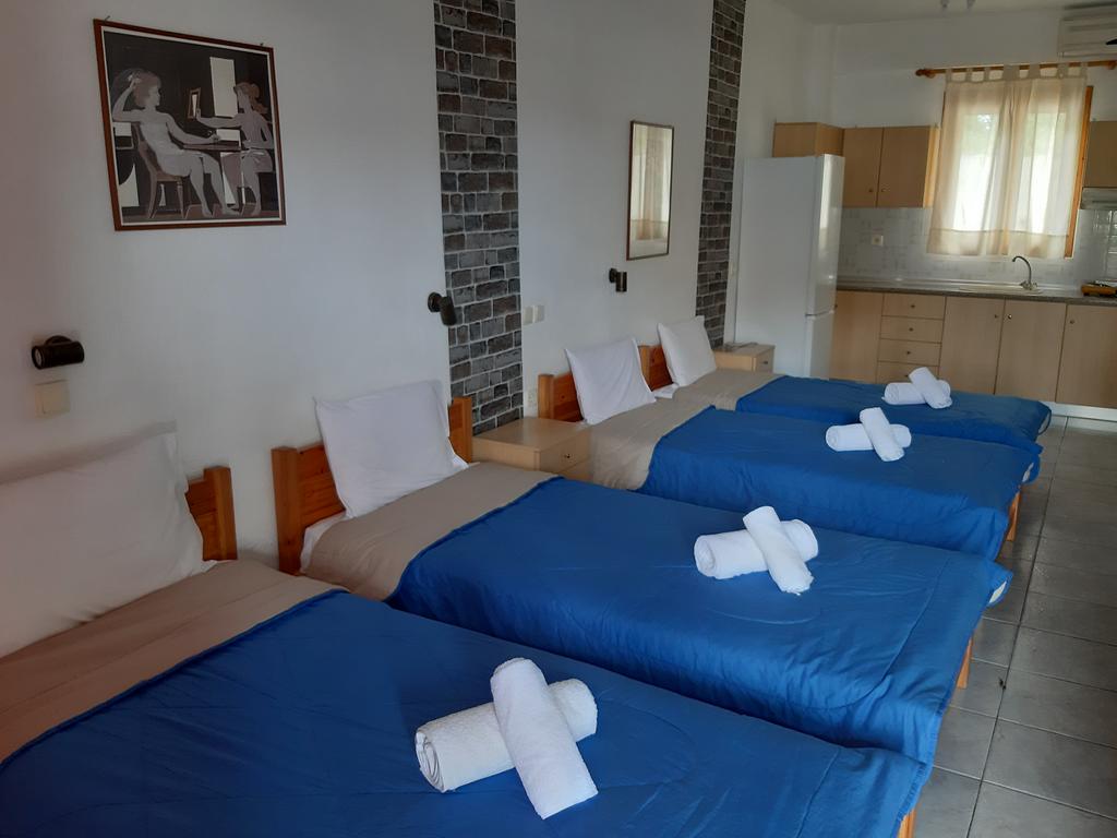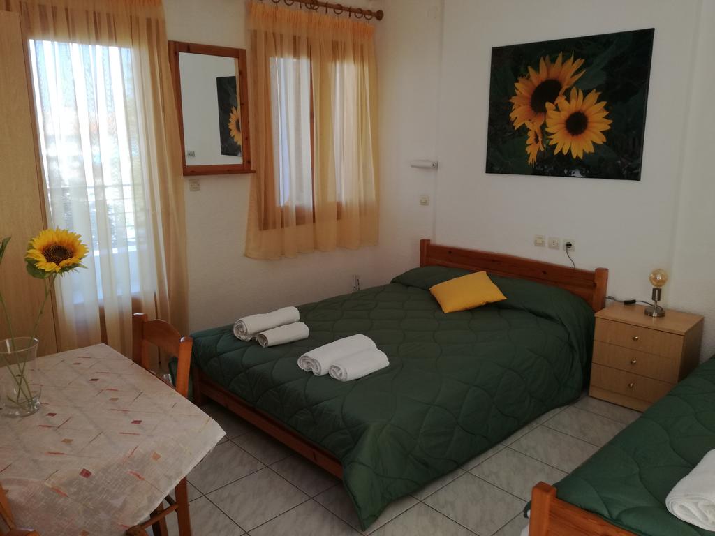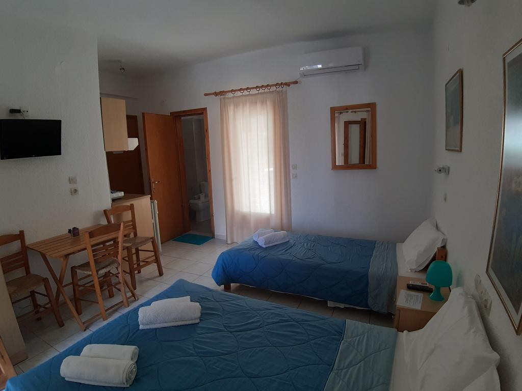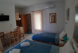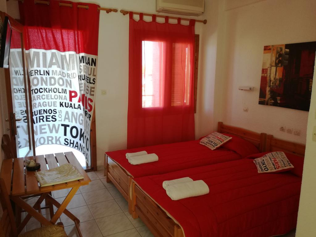 Rappos Studios are close to local restaurants, bars, cafeterias, nightclubs, shops, banks, supermarkets, pharmacies, and whatever else will offer you a pleasant stay. The spacious, hospitable, and comfortable studios aim to offer you enjoyment at friendly prices. Rappos consists of double-rooms with the possibility to extend as three-bed rooms and three-bed room with the possibility to extend as five-bed room. They all come with a kitchen, airconditioning, TV, bathroom with hairdryer, Wifi and a balcony.