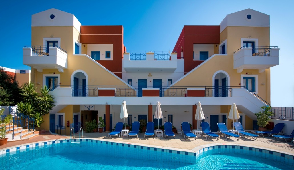 Astra Village & Suites is a charming hotel located in the traditional Greek village of Koutouloufari in Hersonissos on the island of Crete. Its goal is to give you the greatest possible hospitality and strive to deliver first-rate services. For those looking for additional action, a quick taxi journey will take you to Hersonissos port. All apartments and studios are comfortable and bright, with modern facilities and the traditional cretan colours decorating the furniture and walls. They have a fully equipped kitchenette with a two ring cooker, a kettle, a refrigerator and a toaster, self controlled air-conditioning unit, direct dial telephone with wake up call, satellite TV, safety box, a bathroom with shower and a hair dryer.
