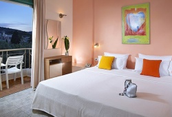 Bella Vista offers 18 spacious 2-room apartments (45 m2) and two spacious studios (30 m2). The apartments are freshly renovated and modernly furnished. They have a separate bedroom and a living room and can accommodate up to four adults. An extra bed or baby cot can be offered upon request. The studios are freshly renovated and modernly furnished, and they can accommodate up to two adults. An extra bed or baby cot can be offered upon request. They all include a sitting and dining area and a fully equipped kitchen with a fridge, freezer, oven, and kitchen table. They are also equipped with a flat-screen TV, a direct telephone line, air conditioning, a safe deposit box, a hair dryer, bathroom amenities, free wi-fi, and balconies or verandas with mountain and sea views.