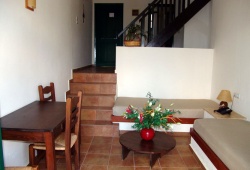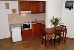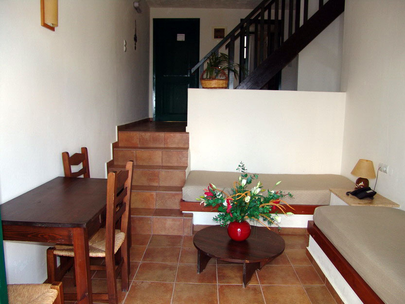 Each apartment can accommodate from 2 to 6 people. Kalimera Village consists of 20 fully furnished and equipped apartments, built on multiple levels and renovated in 2006. They have one or two bedrooms, a bathroom, a living room with built-in sofas, a fully equipped kitchen, and balconies overlooking the sea, regardless of their position. All bedrooms have air conditioning, a television in the living room with satellite reception, a telephone line, wired and wireless internet access, and a safe box. The kitchen has an electric hob, oven, fridge, sink, all cooking utensils, a kettle, a coffee machine, a complete set of dishes, and glasses.