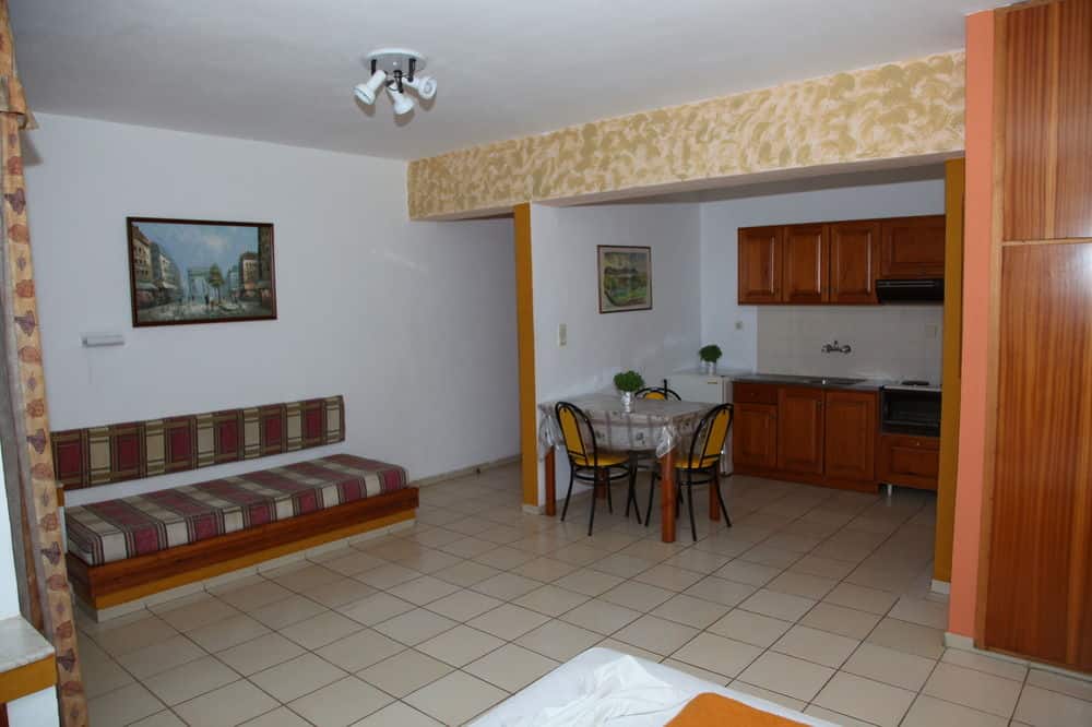 Just 200 meters from the beach, in the well-known town of Hersonissos, are the Sogiorka Apartments, situated around 25 kilometers east of Heraklion.The building has large 2-room apartments and open-plan studios with a living room, and bedroom. There is a private balcony for relaxing and dining and a kitchen complete with tea/coffee making equipment, refrigerators and an oven. Each unit has a built-in two-programme music system. The complex is equipped with a TV/video room and bar facilities. Visitors may watch TV in the lobby, take use of the free WiFi internet access accessible throughout the hotel, or simply relax on the shared veranda and take in the scenery. You may discover shopping facilities nearby, bars, discos, tavernas, restaurants, and bus stops. Book Sogiorka Apartments in Hersonissos because it is the best holiday choice in Crete! Compare prices given by different online booking services.
